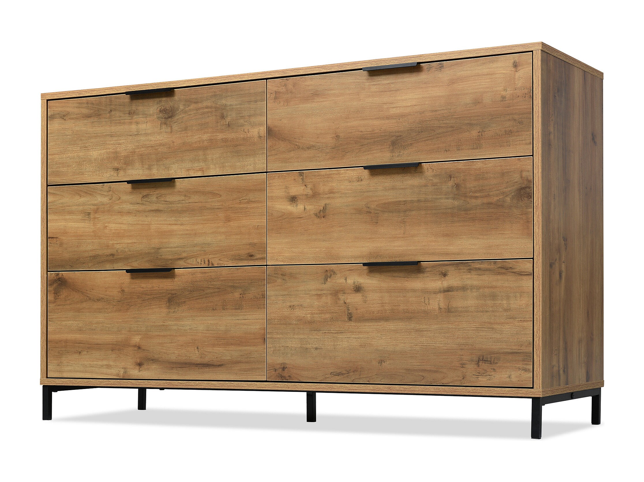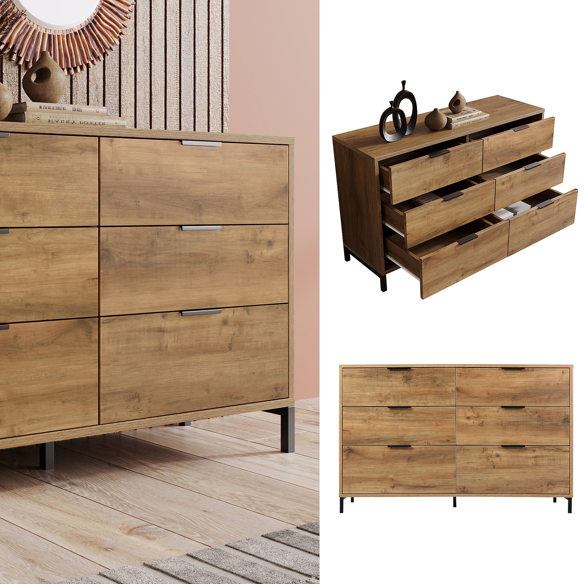 Buffet avec étagères réglables - 6 tiroirs - Chêne foncé