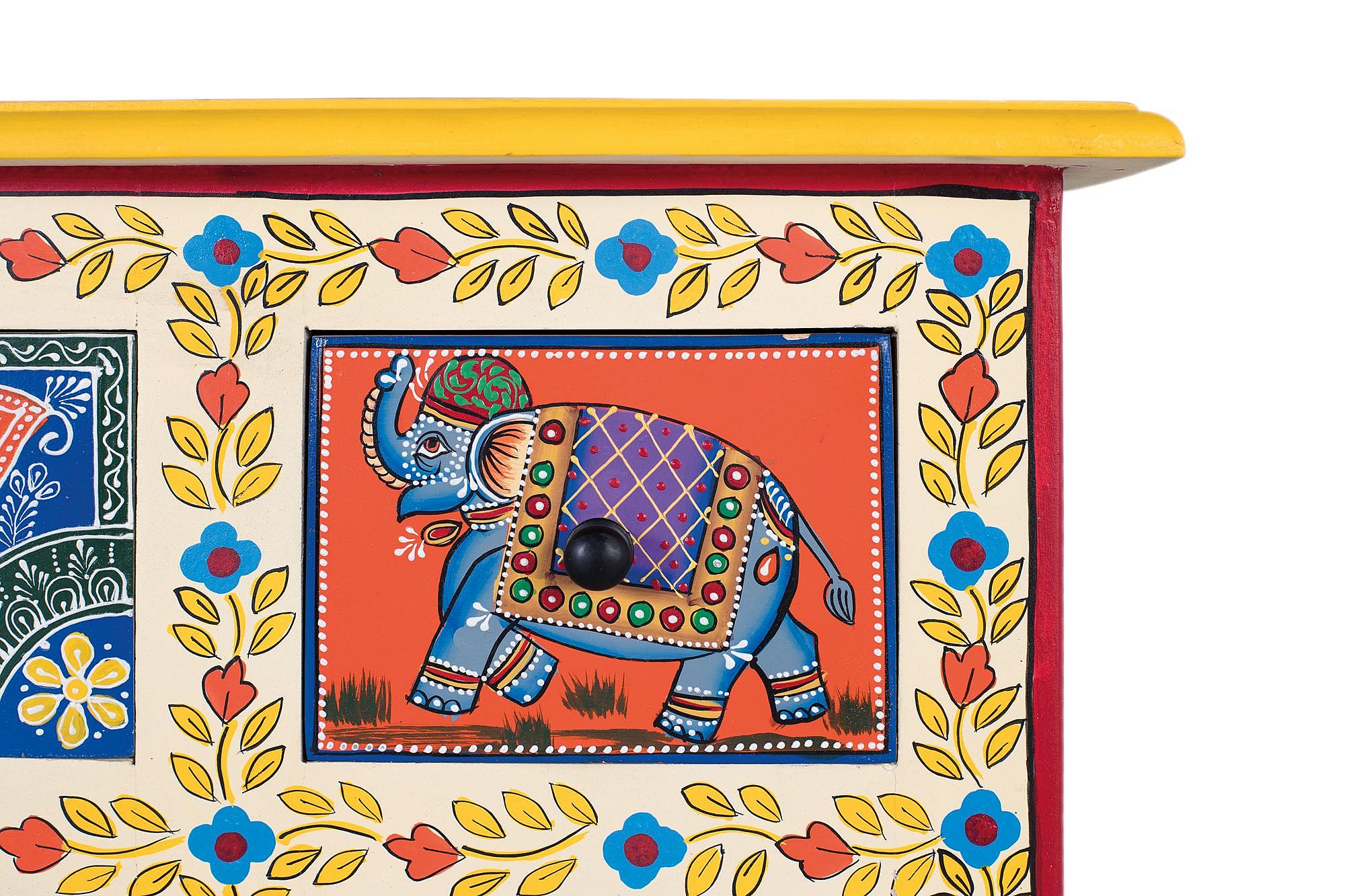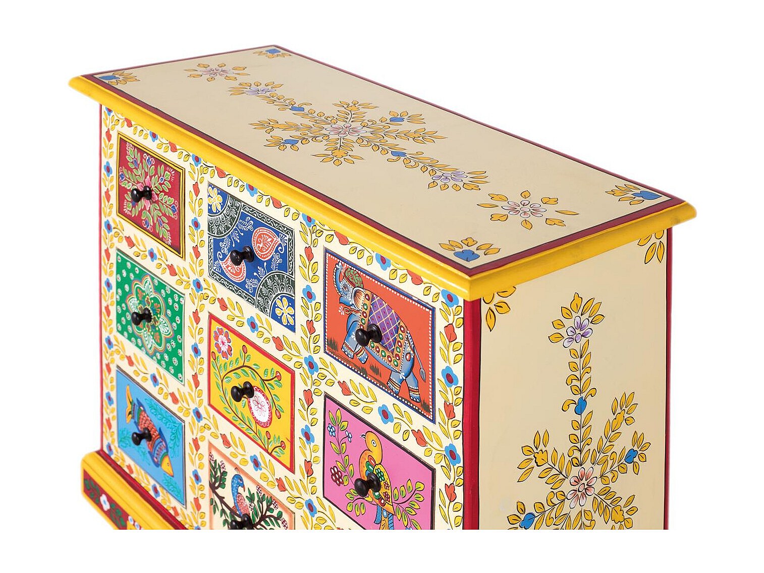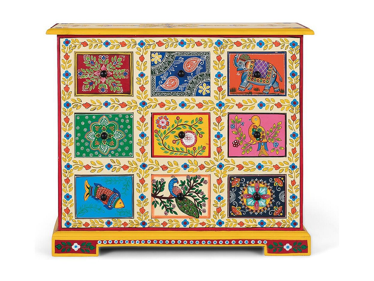 Buffet avec 9 tiroirs multicolores peints à la main bois masif