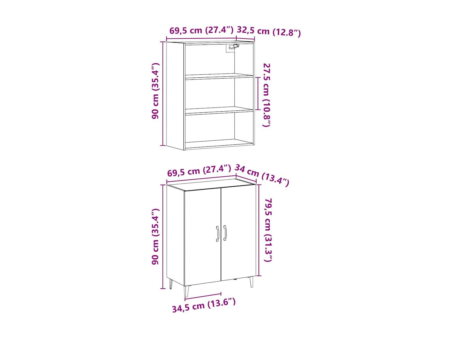 Armoires murales 2 pièces chêne sonoma 69,5x34x90 cm