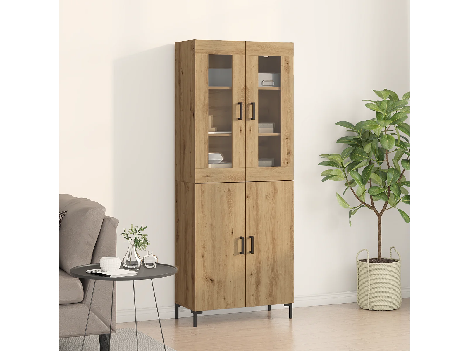 Buffet avec cabinet mural en chêne artisanal