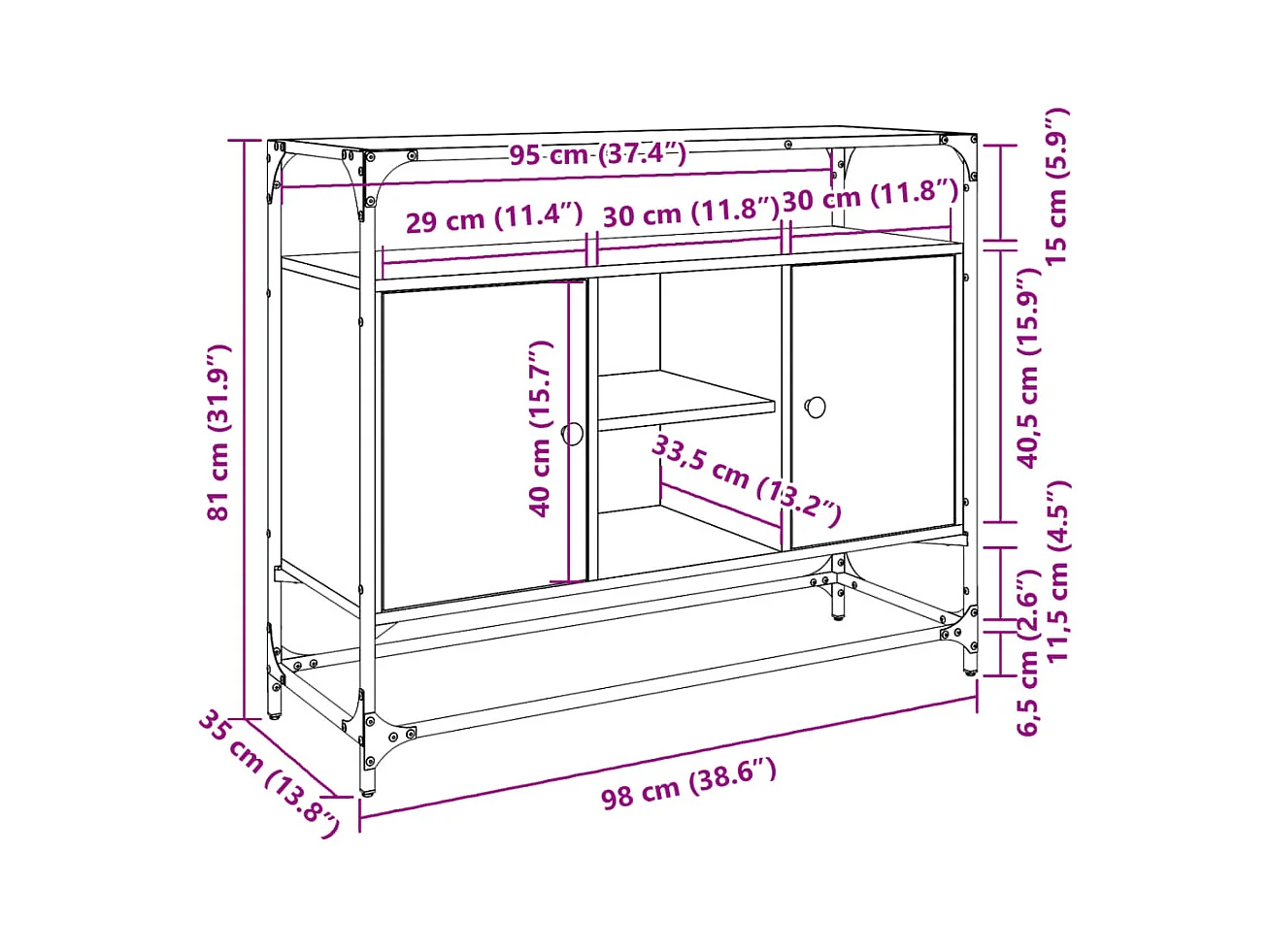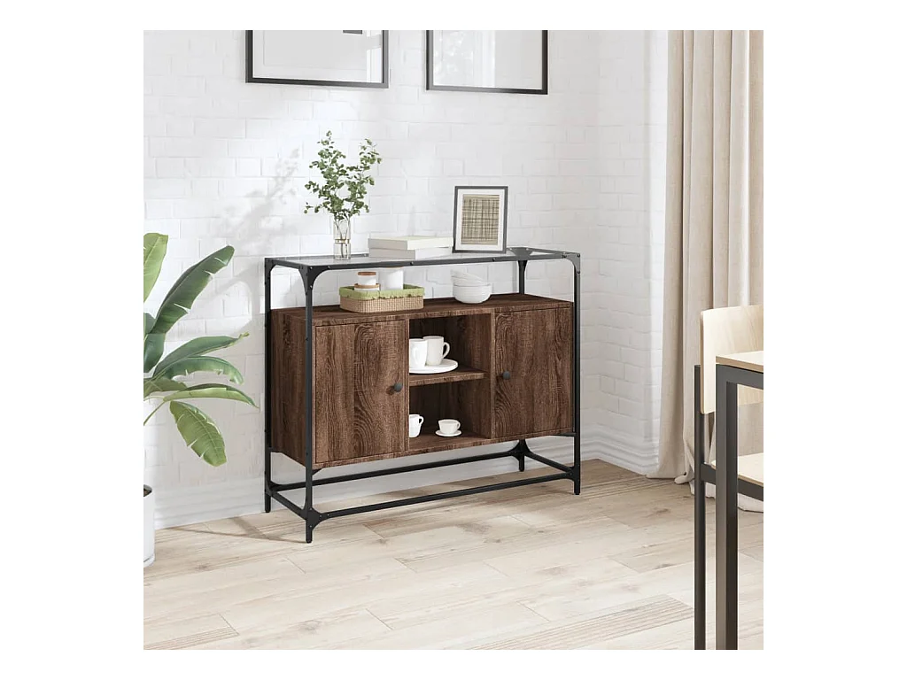 Buffet avec dessus en verre chêne fumé bois d'ingénierie
