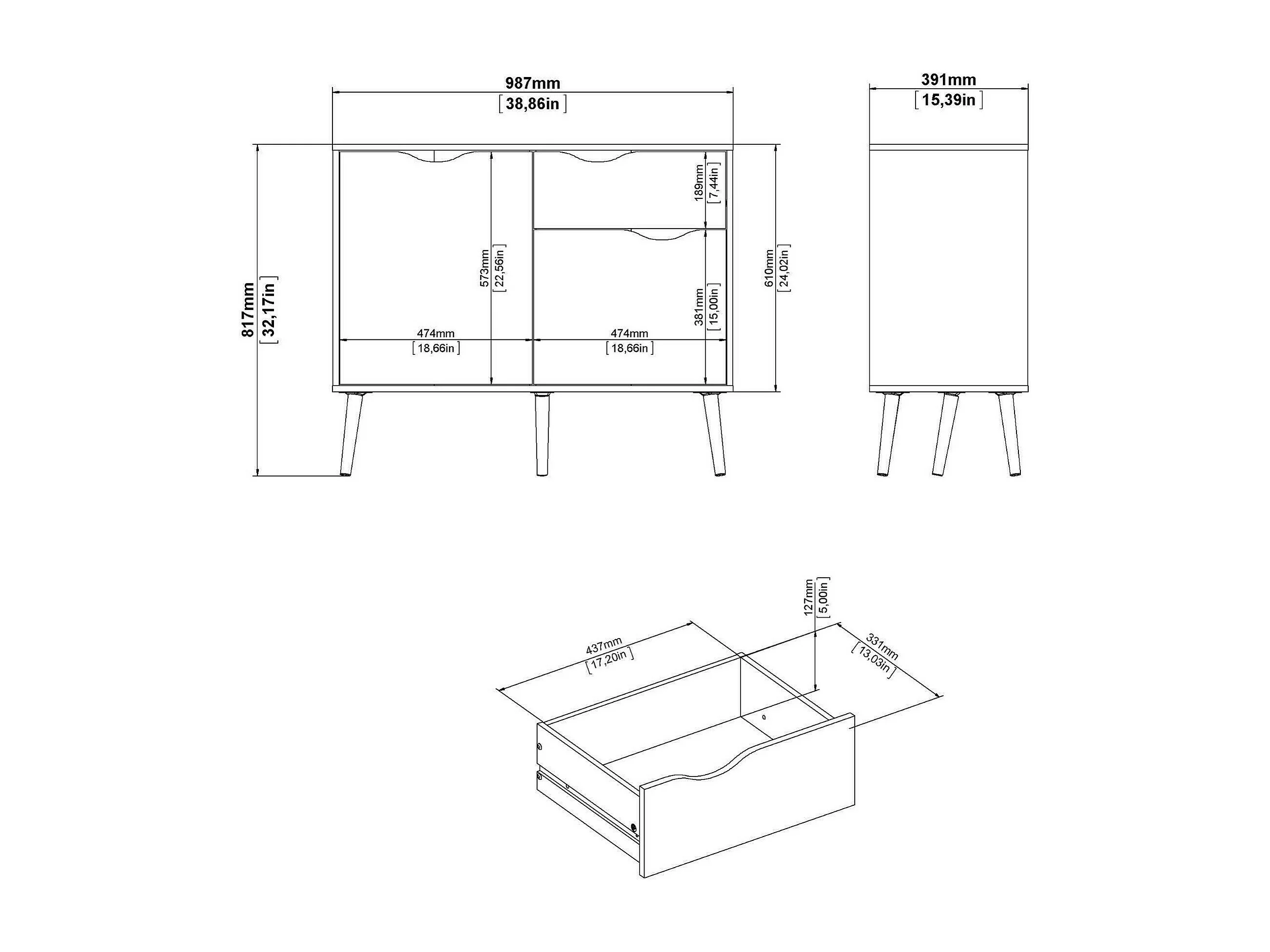 Buffet avec deux portes et un tiroir, blanc et chêne, Mesures 98 x 81 x 39 cm