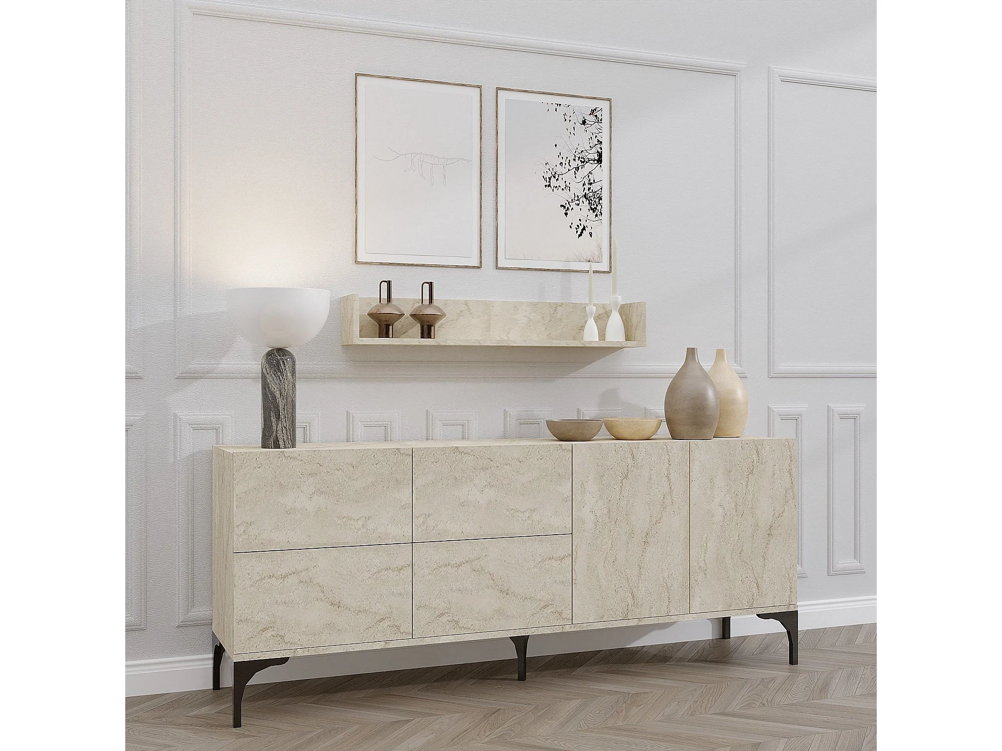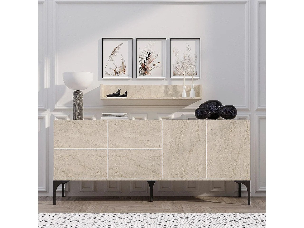 Buffet avec étagère murale – 180 x 55 x 40 cm – Travertin – Revêtement mélaminé