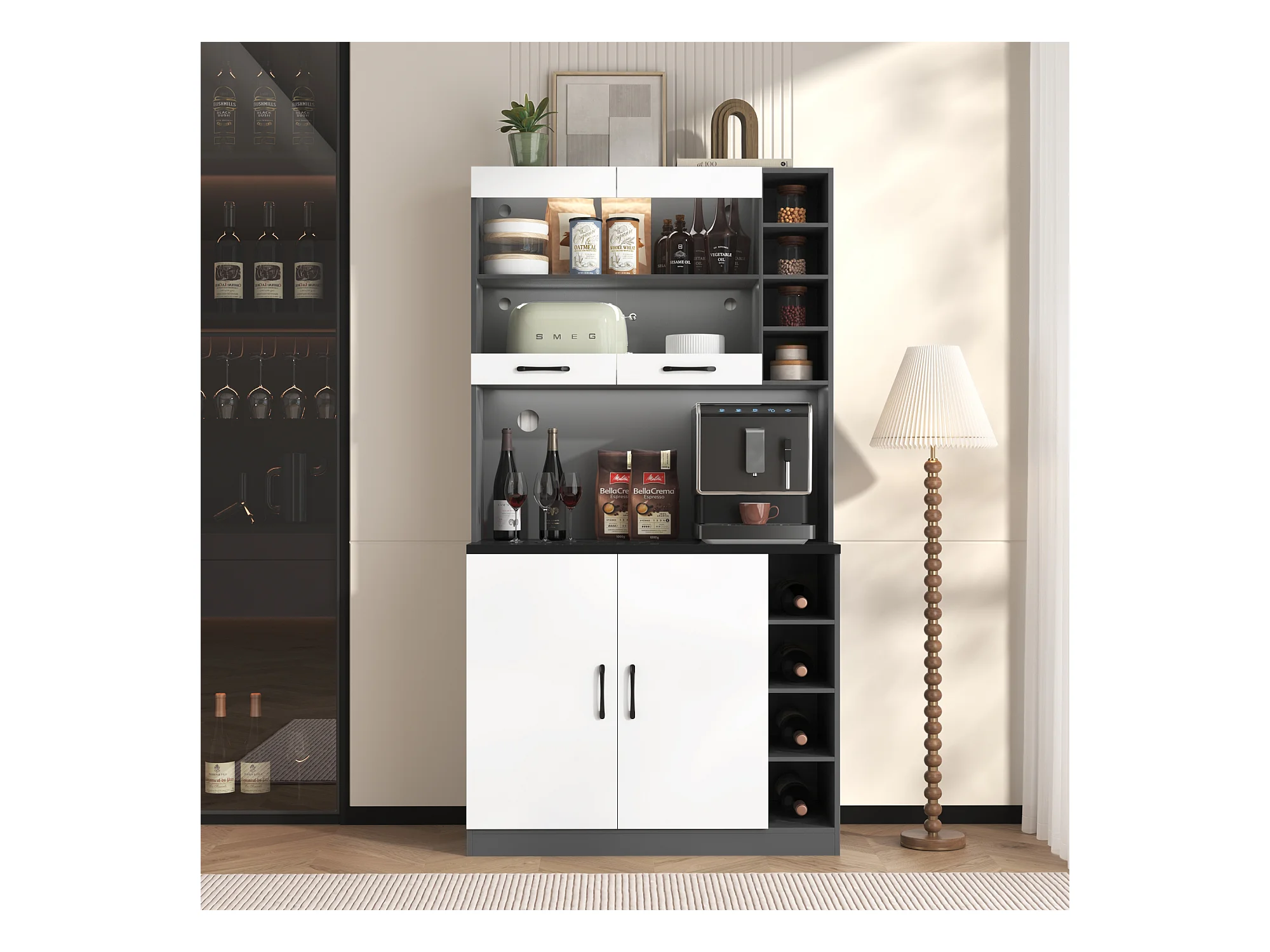 Buffet avec LED, 100x47x187 cm, rangement pratique avec prises USB, ajustable et conçu pour cuisine et salle à manger