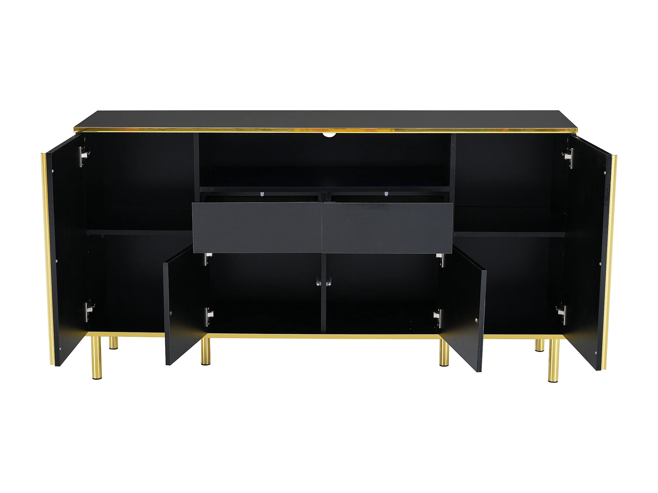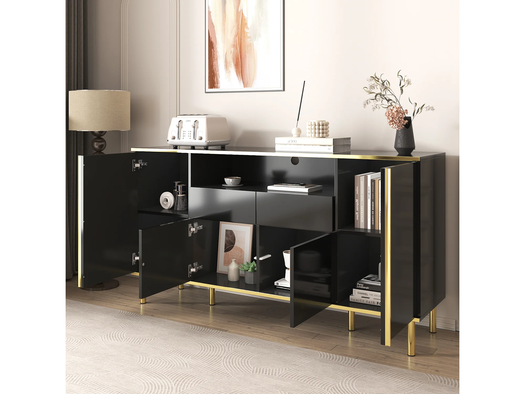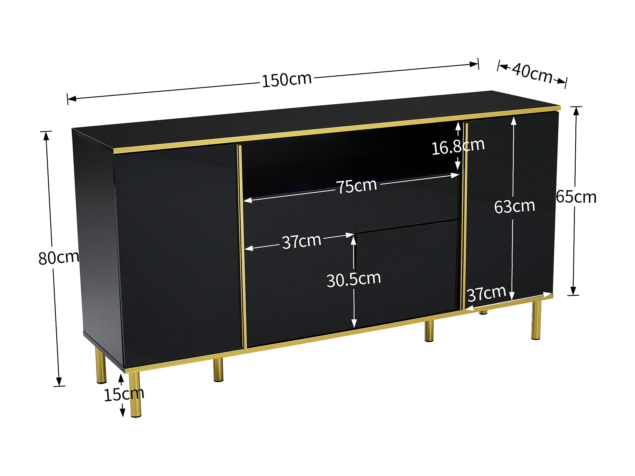 Buffet avec LED - 4 portes 2 tiroirs - Surface brillante - style contemporain - Noir