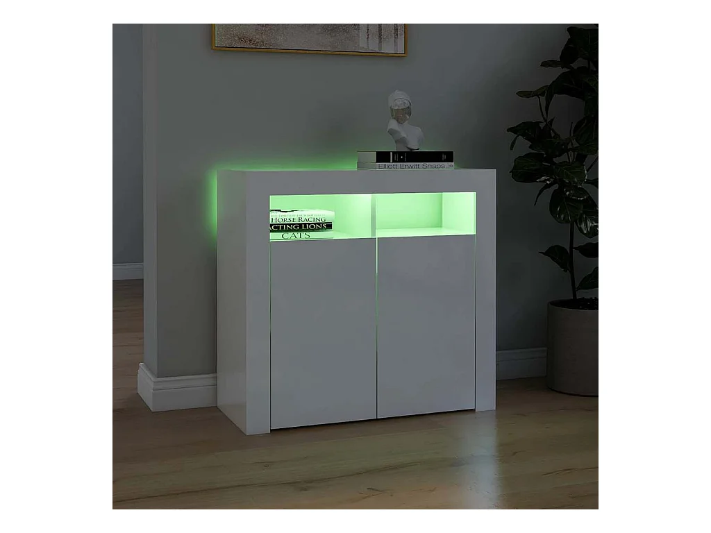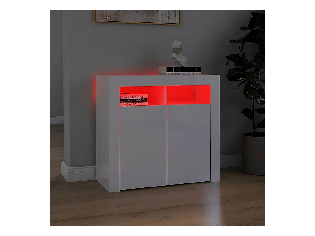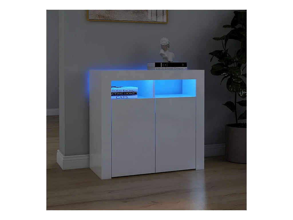 Buffet avec lumières LED blanc brillant 80x35x75 cm