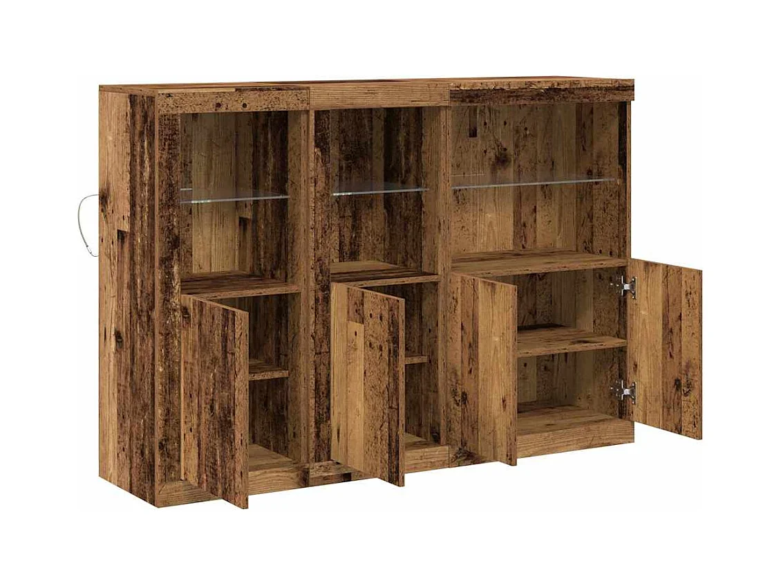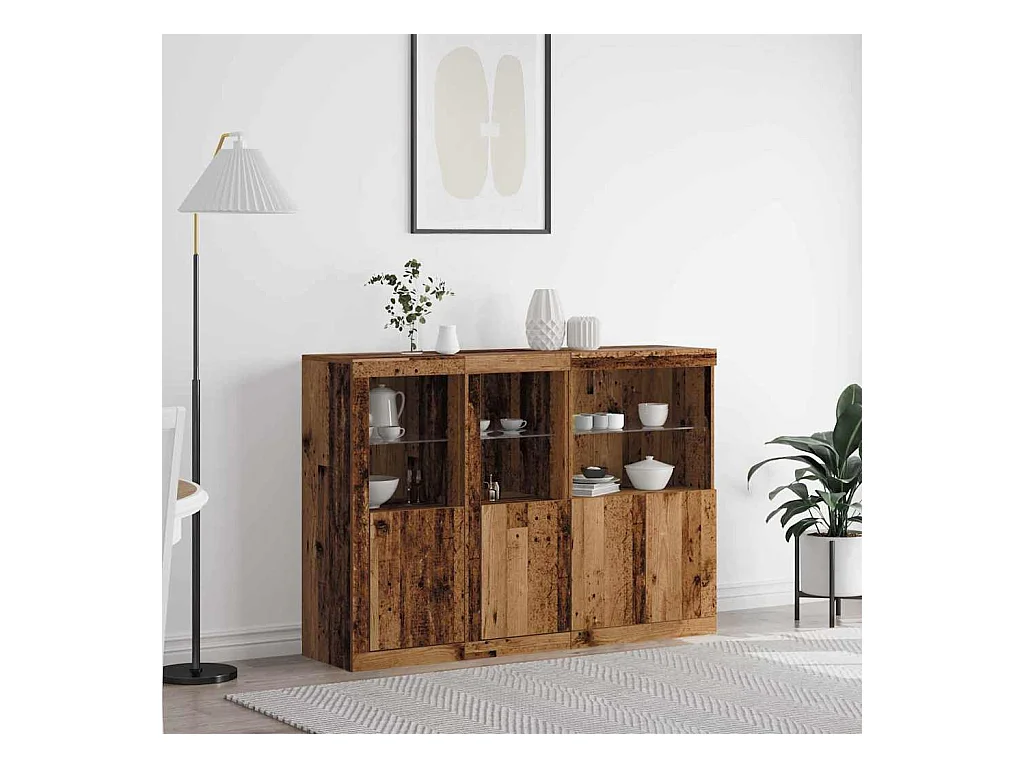 Buffets avec lumières LED 3 pcs chêne fumé bois d'ingénierie