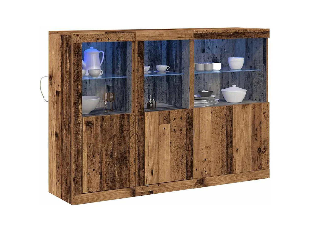 Buffets avec lumières LED 3 pcs chêne sonoma bois d'ingénierie