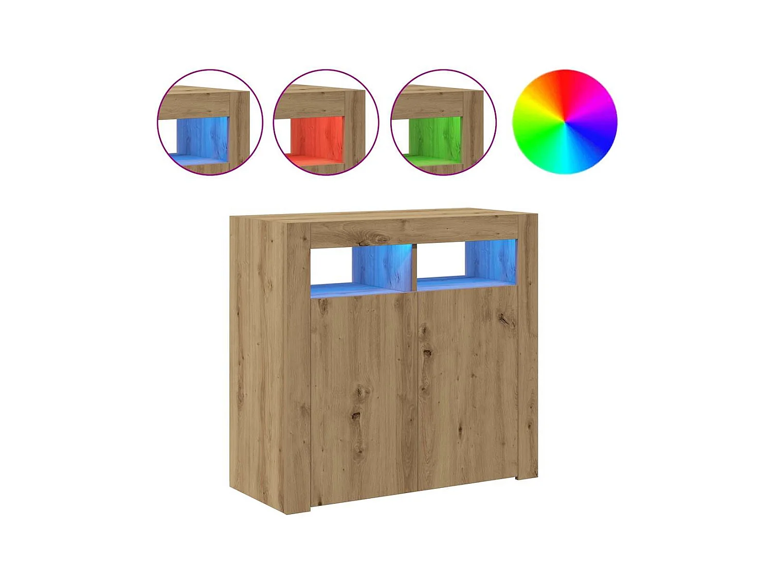 Buffet avec lumières LED chêne sonoma 80x35x75 cm