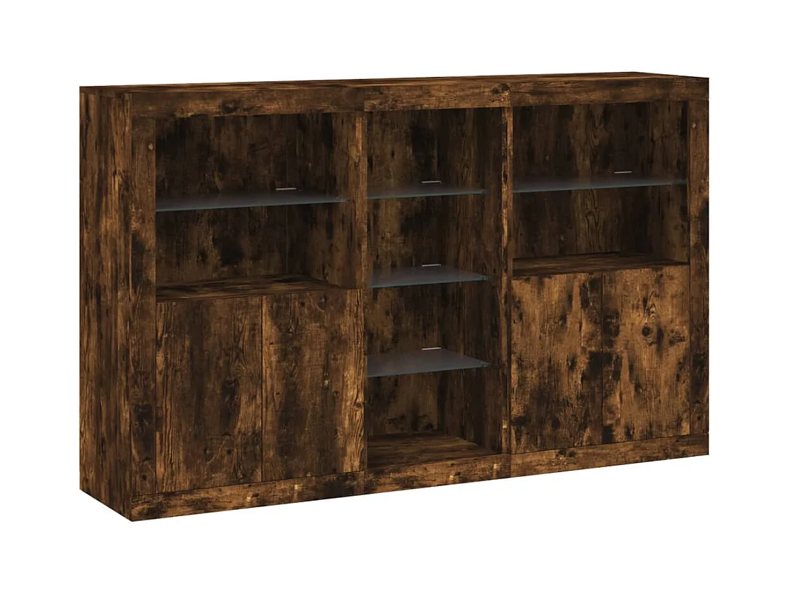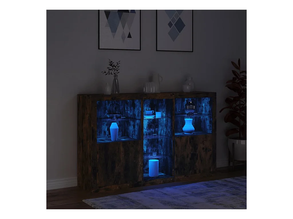 Buffet avec lumières LED chêne fumé 162x37x67 cm FR48036