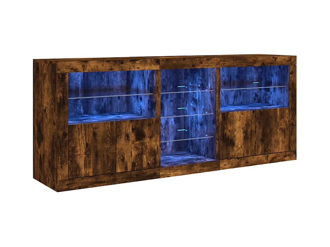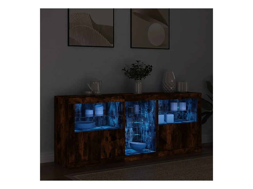 Buffet avec lumières LED chêne fumé 162x37x67 cm FR48036