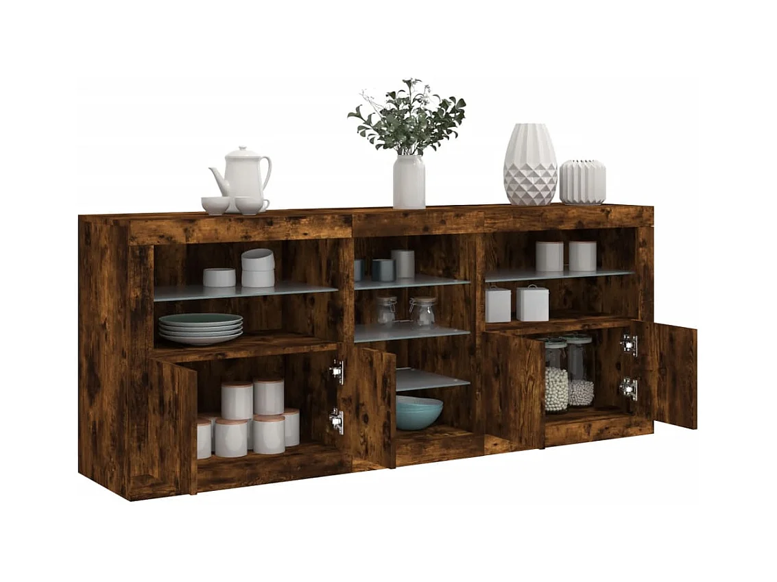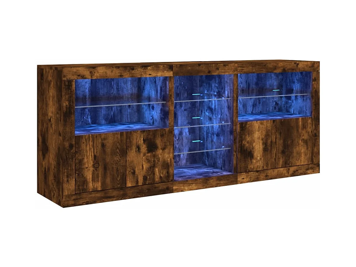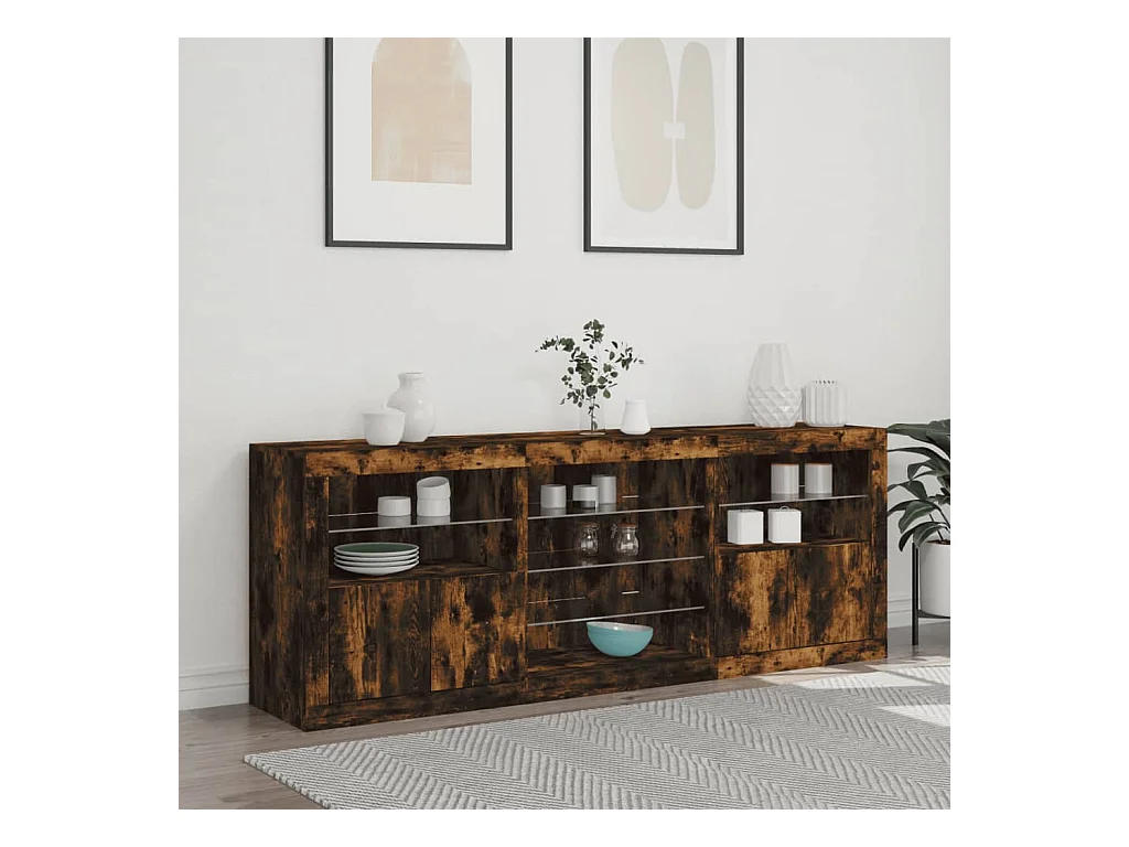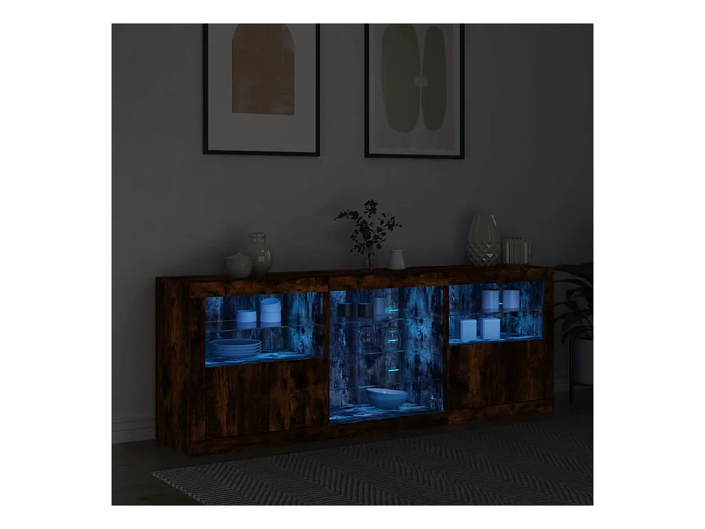 Buffet avec lumières LED chêne fumé 181,5x37x67 cm