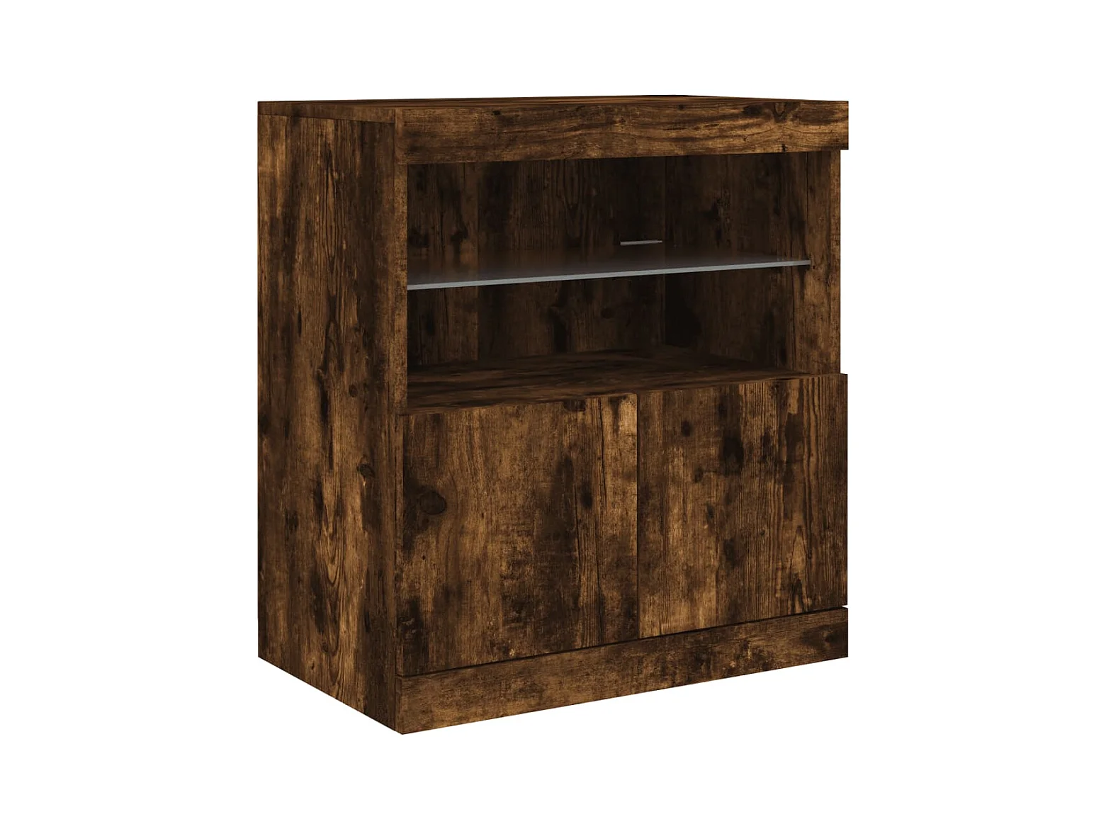 Buffet avec lumières LED chêne fumé 60x37x67 cm