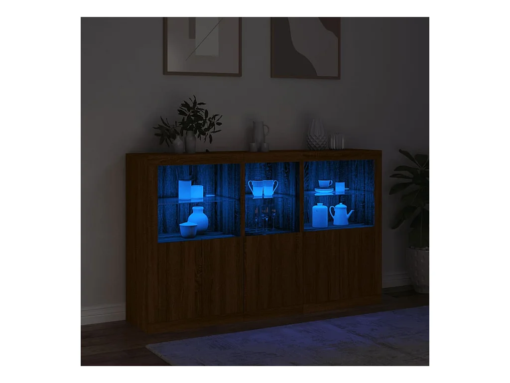 Buffets avec lumières LED 3 pcs chêne fumé bois d'ingénierie