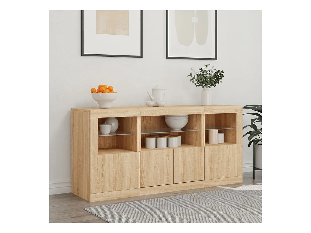 Buffet avec lumières LED chêne sonoma 142,5x37x67 cm