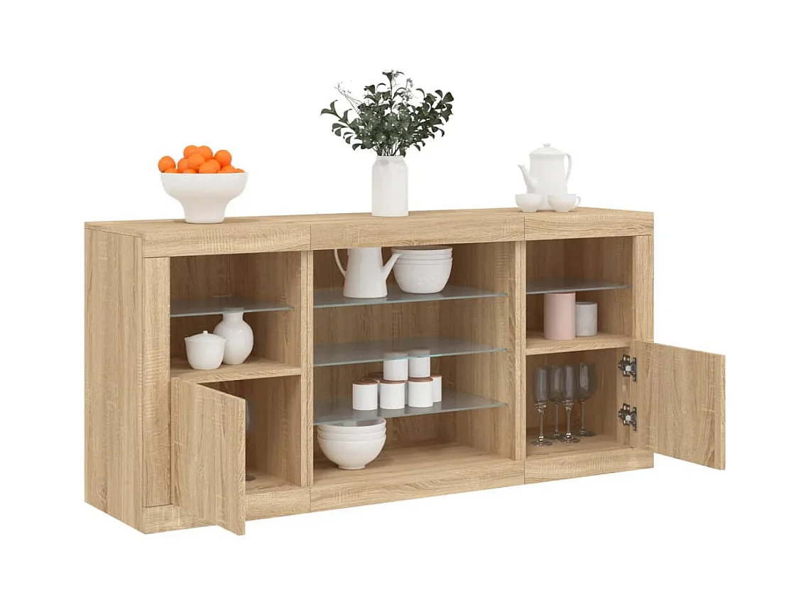 Buffet avec lumières LED chêne sonoma 142,5x37x67 cm