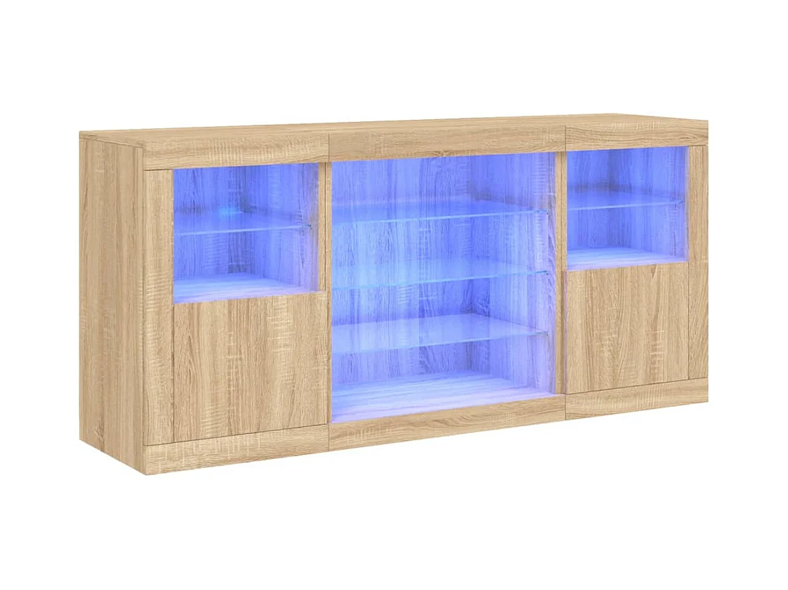Buffet avec lumières LED chêne sonoma 123x37x67 cm FR87841