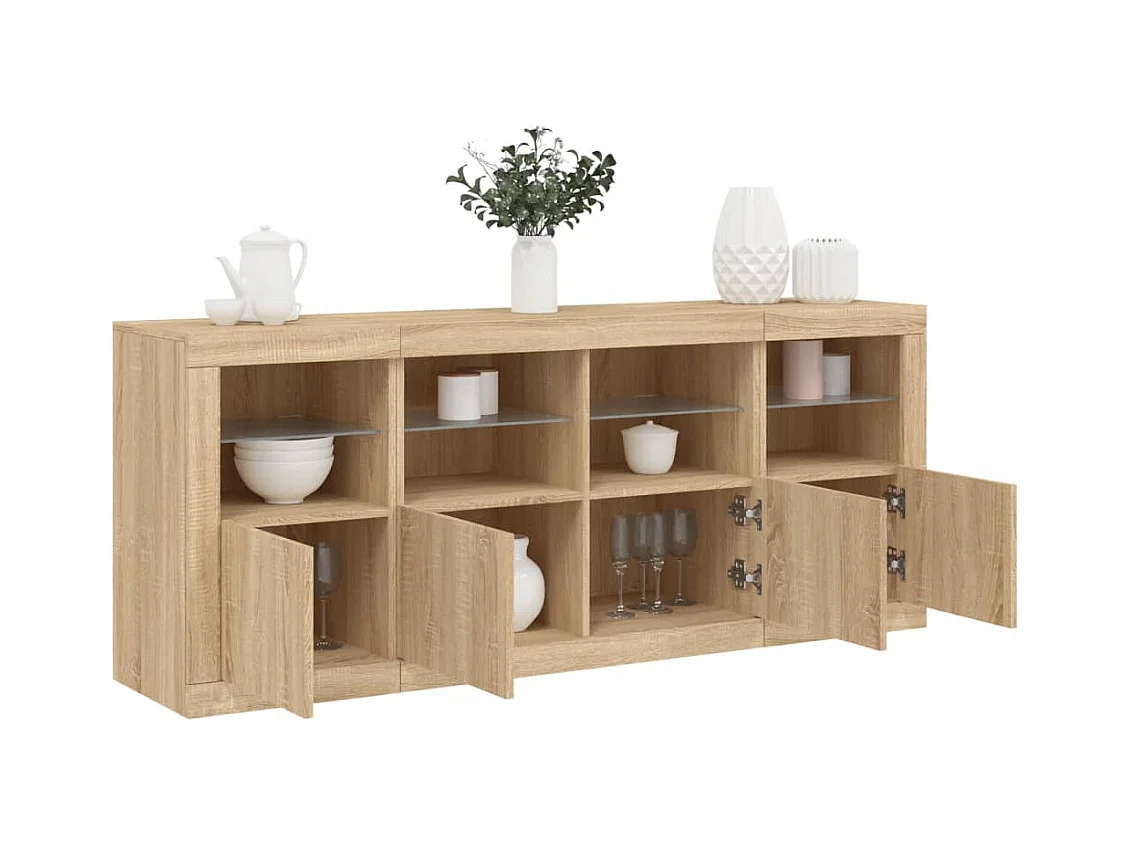 Buffet avec lumières LED chêne sonoma 164x37x67 cm