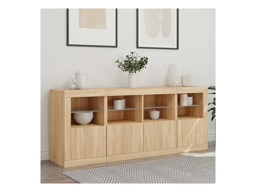 Buffet avec lumières LED chêne sonoma 283x37x67 cm