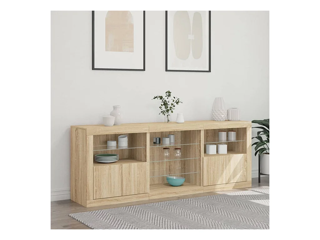 Buffet avec lumières LED chêne sonoma 181,5x37x67 cm FR99348