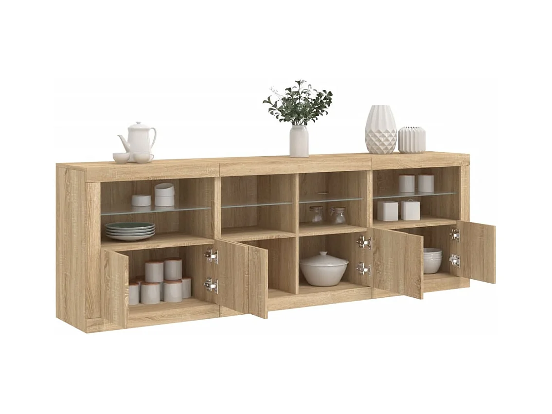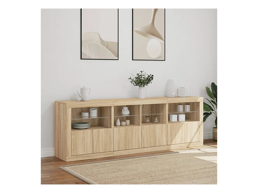 Buffet avec lumières LED chêne sonoma 202x37x67 cm