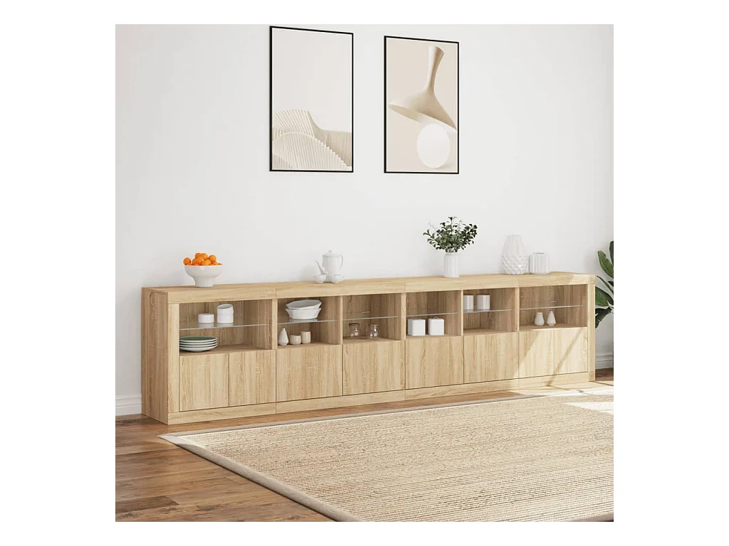 Buffet avec lumières LED chêne sonoma 283x37x67 cm