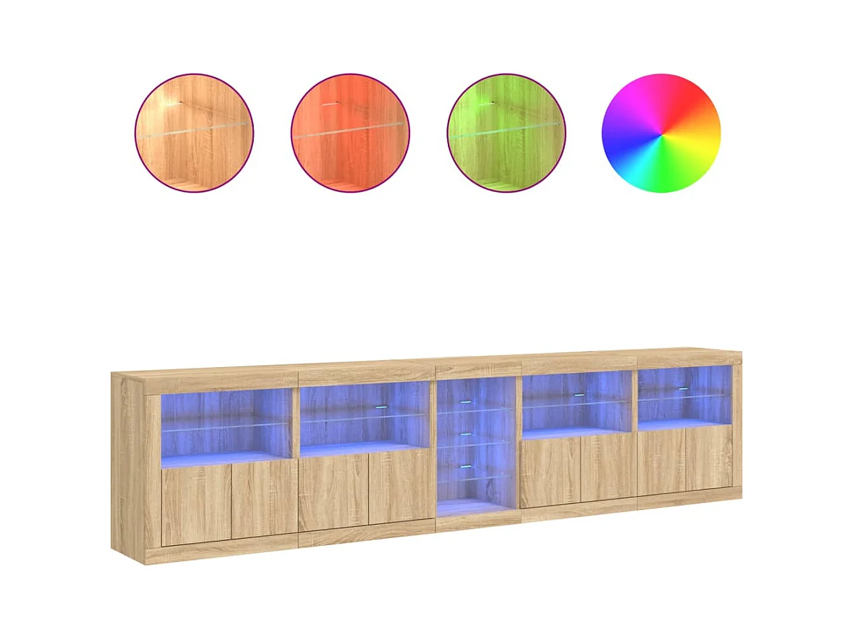 Buffet avec lumières LED chêne sonoma 283x37x67 cm