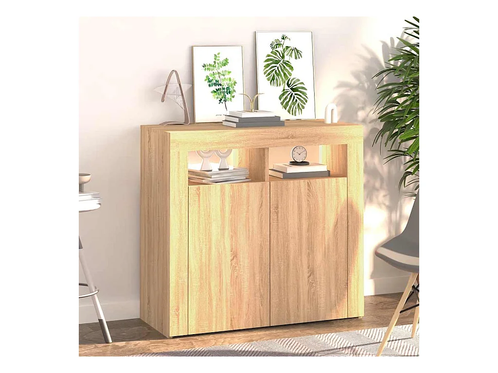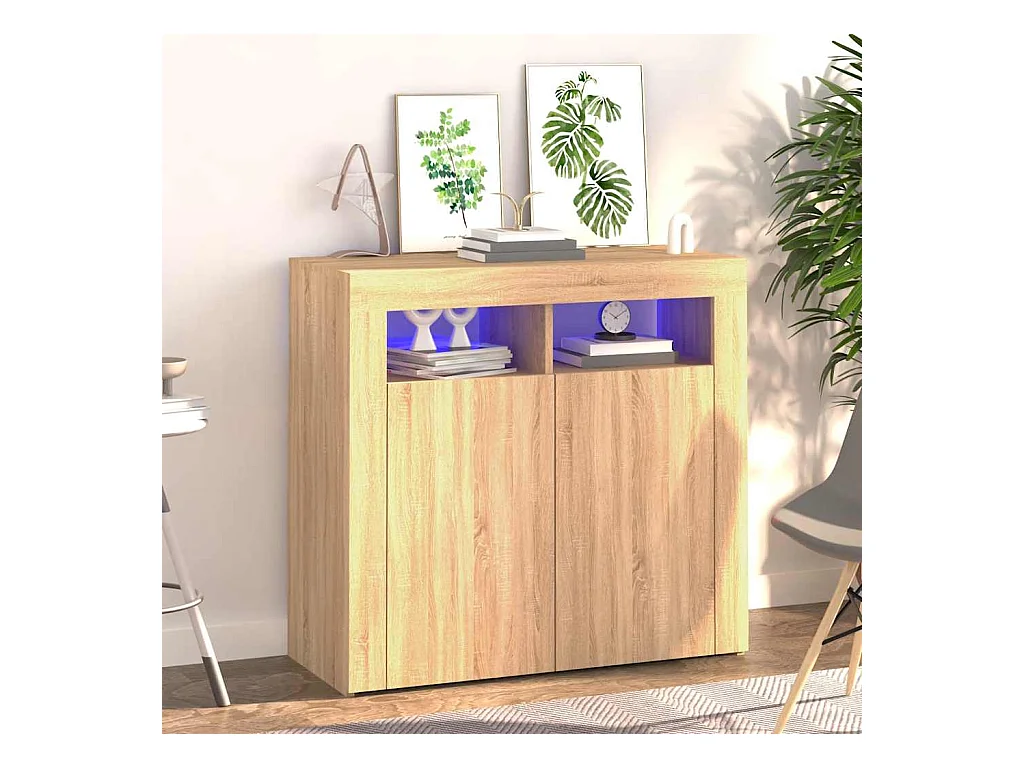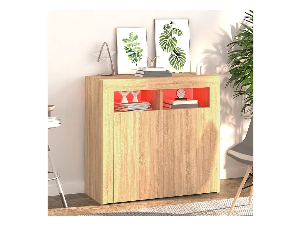 Buffet avec lumières LED chêne sonoma 80x35x75 cm