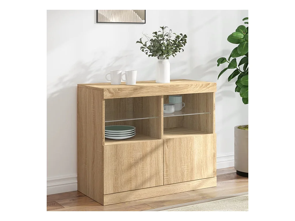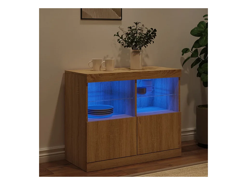 Buffet avec lumières LED chêne sonoma 81x37x67 cm