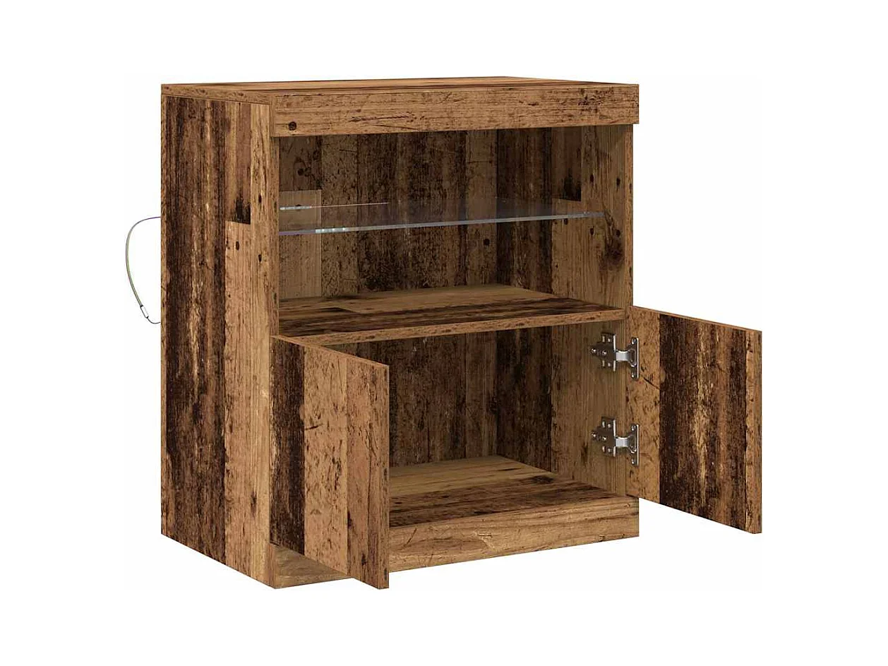 Buffet avec lumières LED en bois ancien 60x37x67 cm