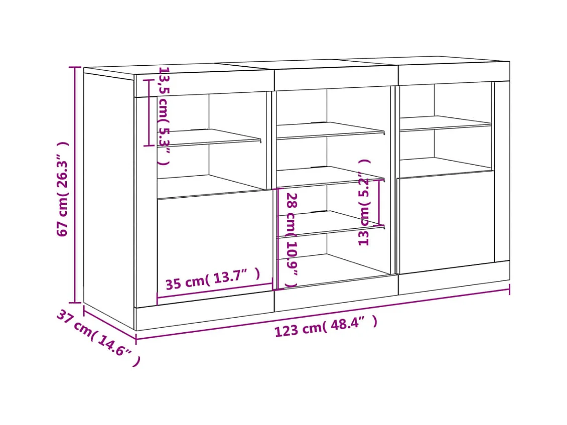 Buffets avec lumières LED 3 pcs sonoma gris bois d'ingénierie