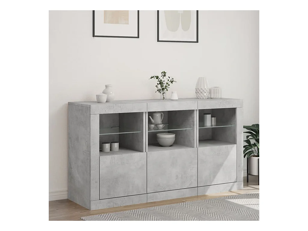Buffet avec lumières LED gris béton 162x37x67 cm