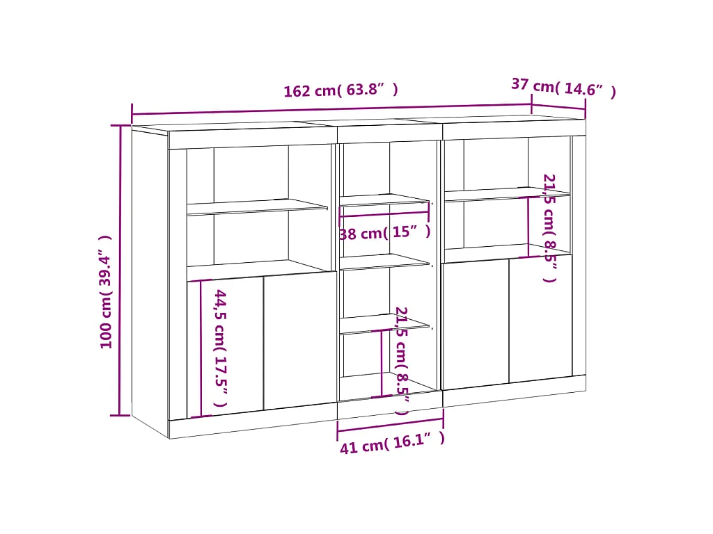Buffet avec lumières LED gris béton 162x37x100 cm