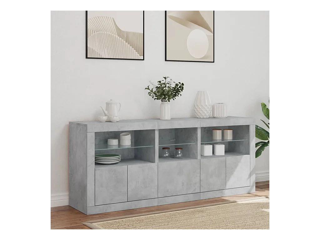 Buffet avec lumières LED gris béton 283x37x67 cm