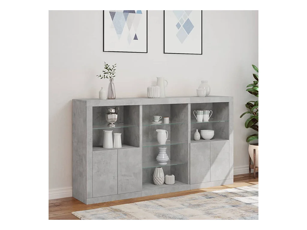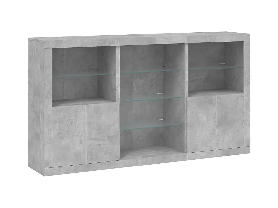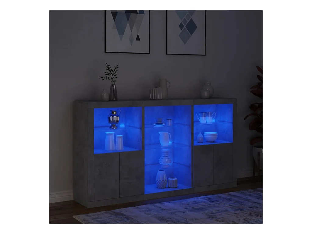 Buffets avec lumières LED 3 pièces sonoma gris bois d'ingénierie