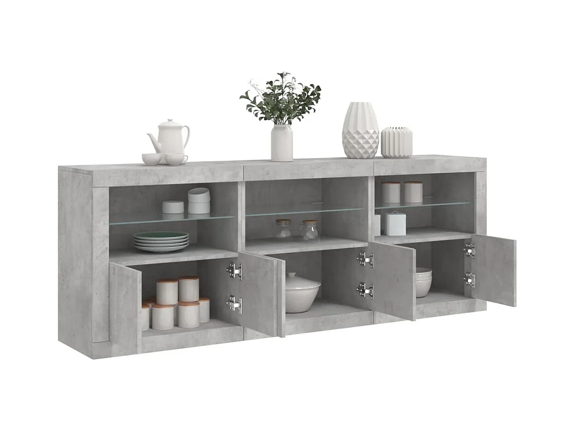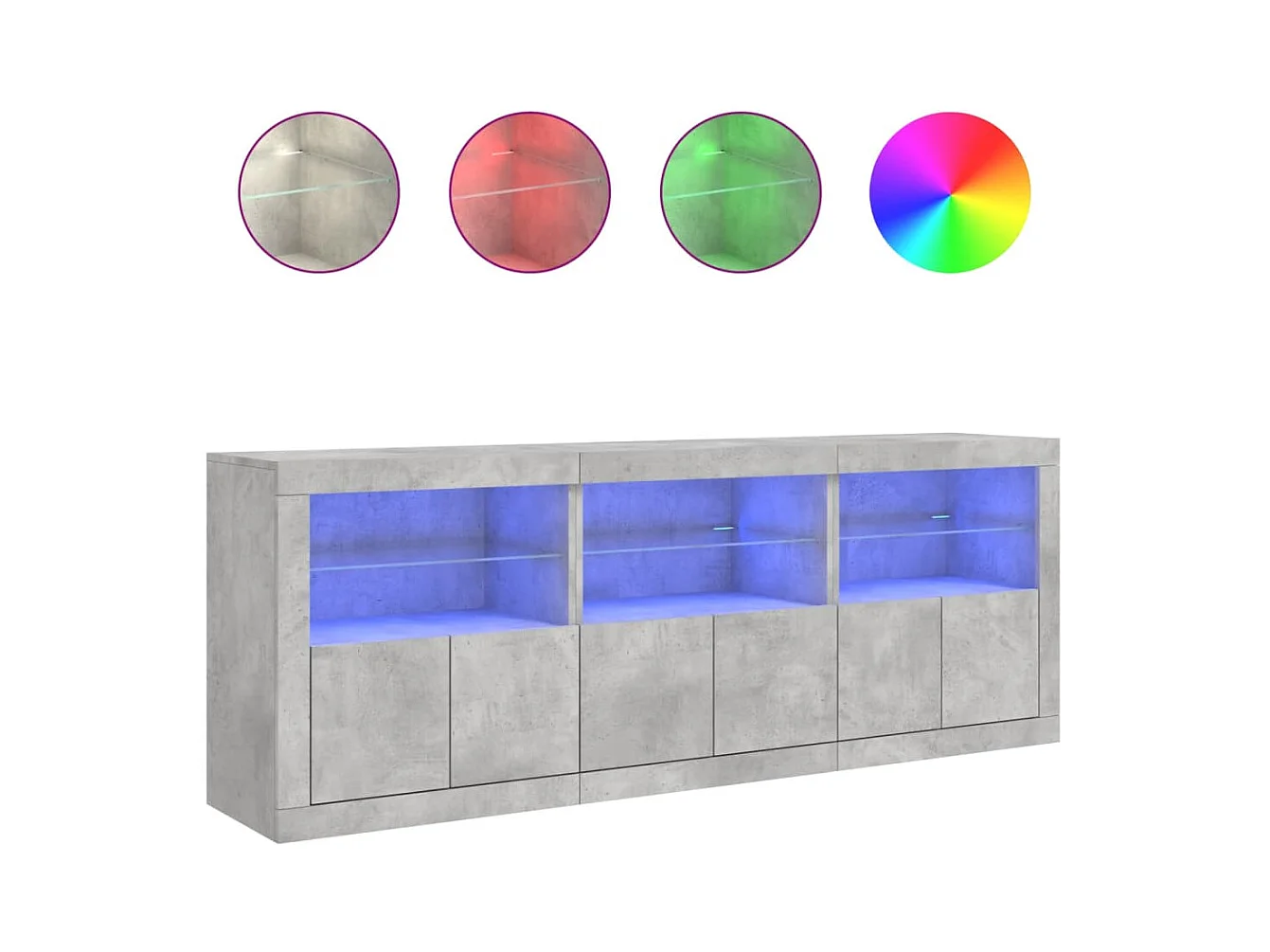 Buffet avec lumières LED gris béton 181,5x37x67 cm