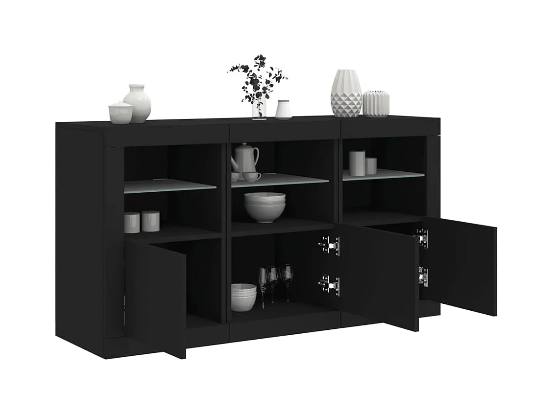 Buffet avec lumières LED noir 181,5x37x67 cm