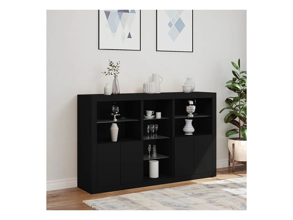 Buffets avec lumières LED 3 pièces noir bois d'ingénierie