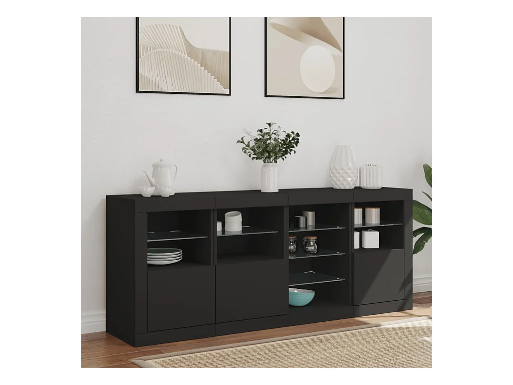 Buffets avec lumières LED 3 pièces noir bois d'ingénierie