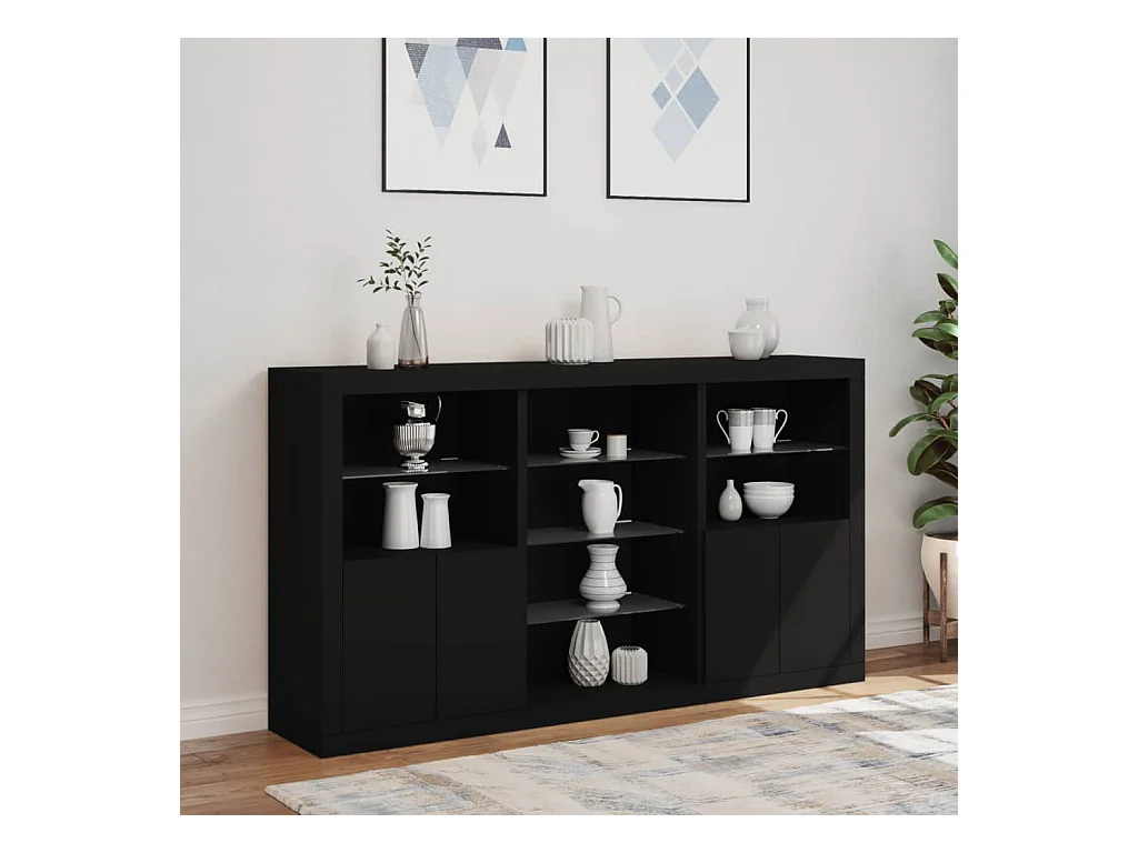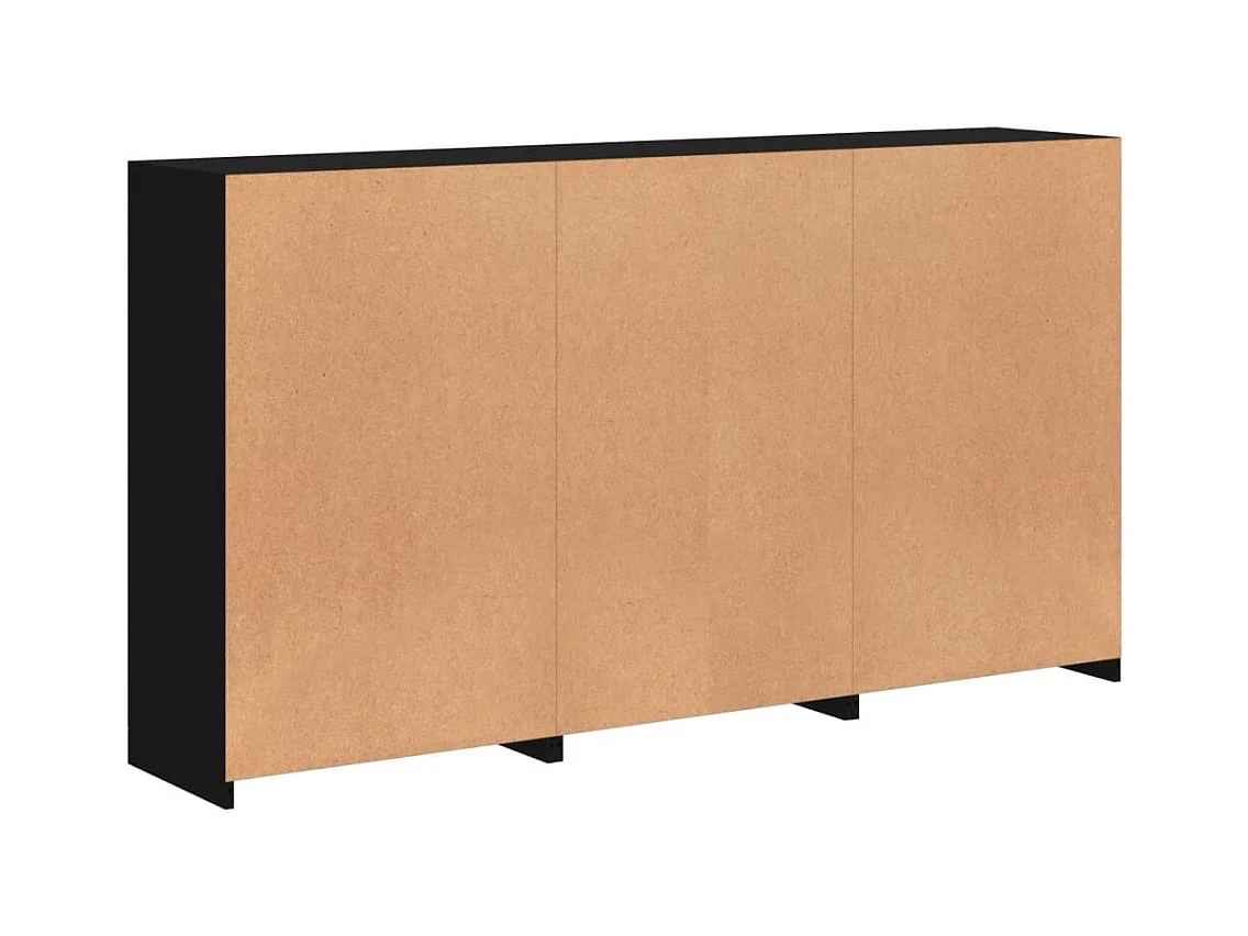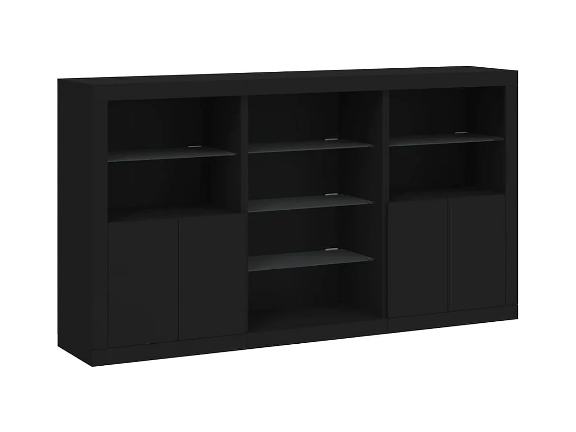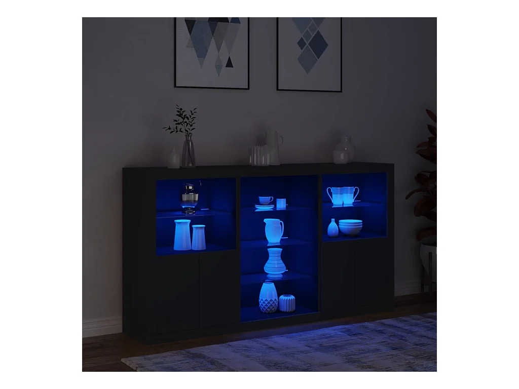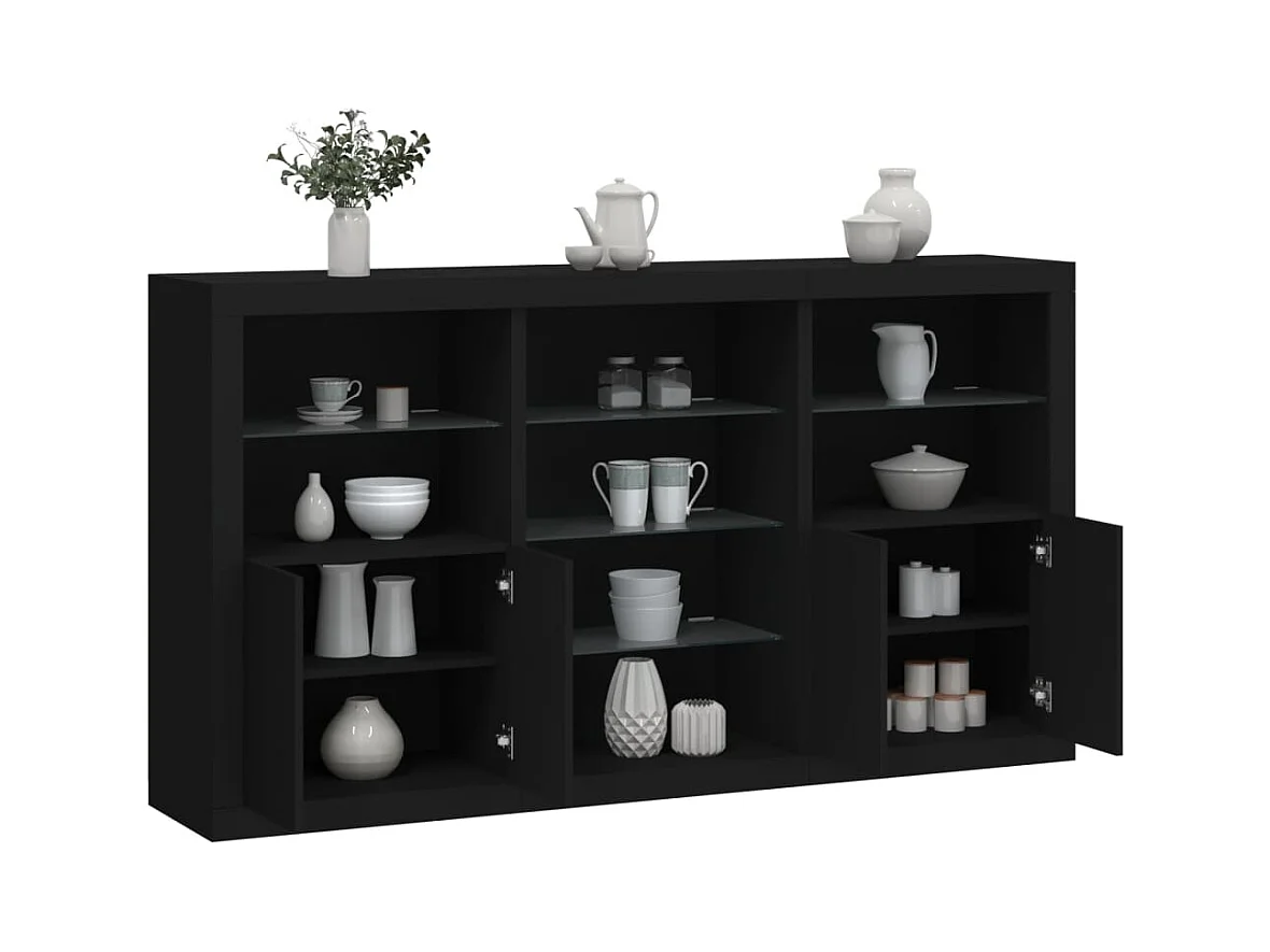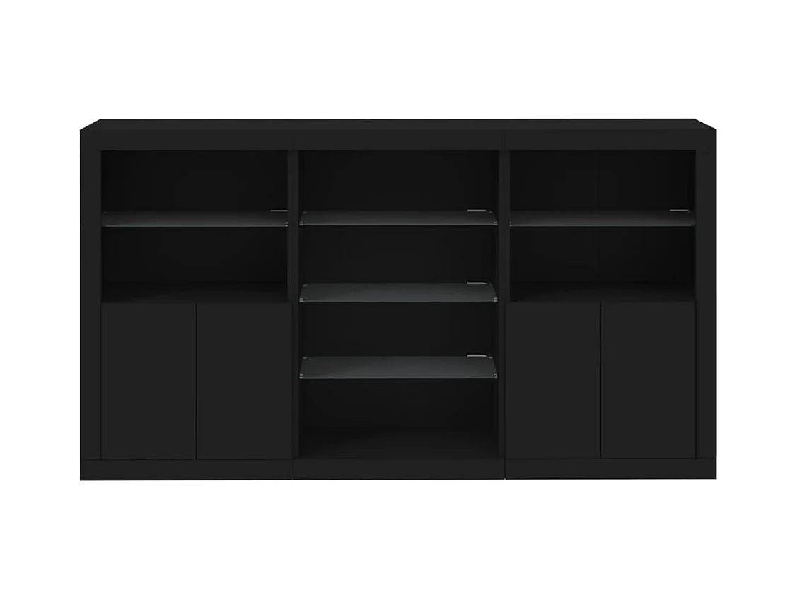 Buffets avec lumières LED 3 pièces noir bois d'ingénierie