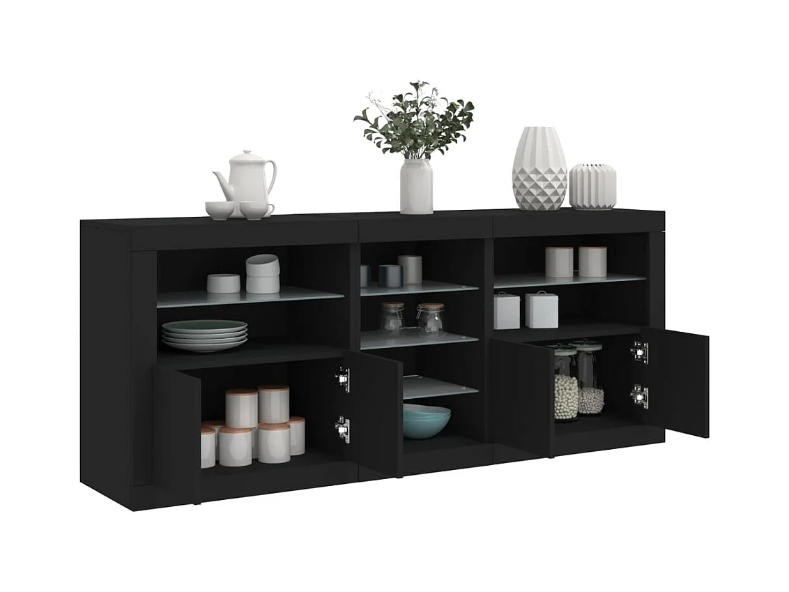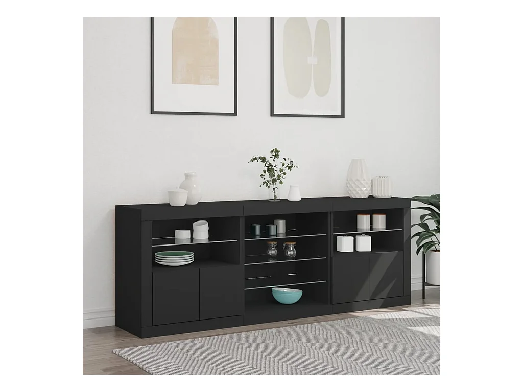 Buffet avec lumières LED noir 181,5x37x67 cm