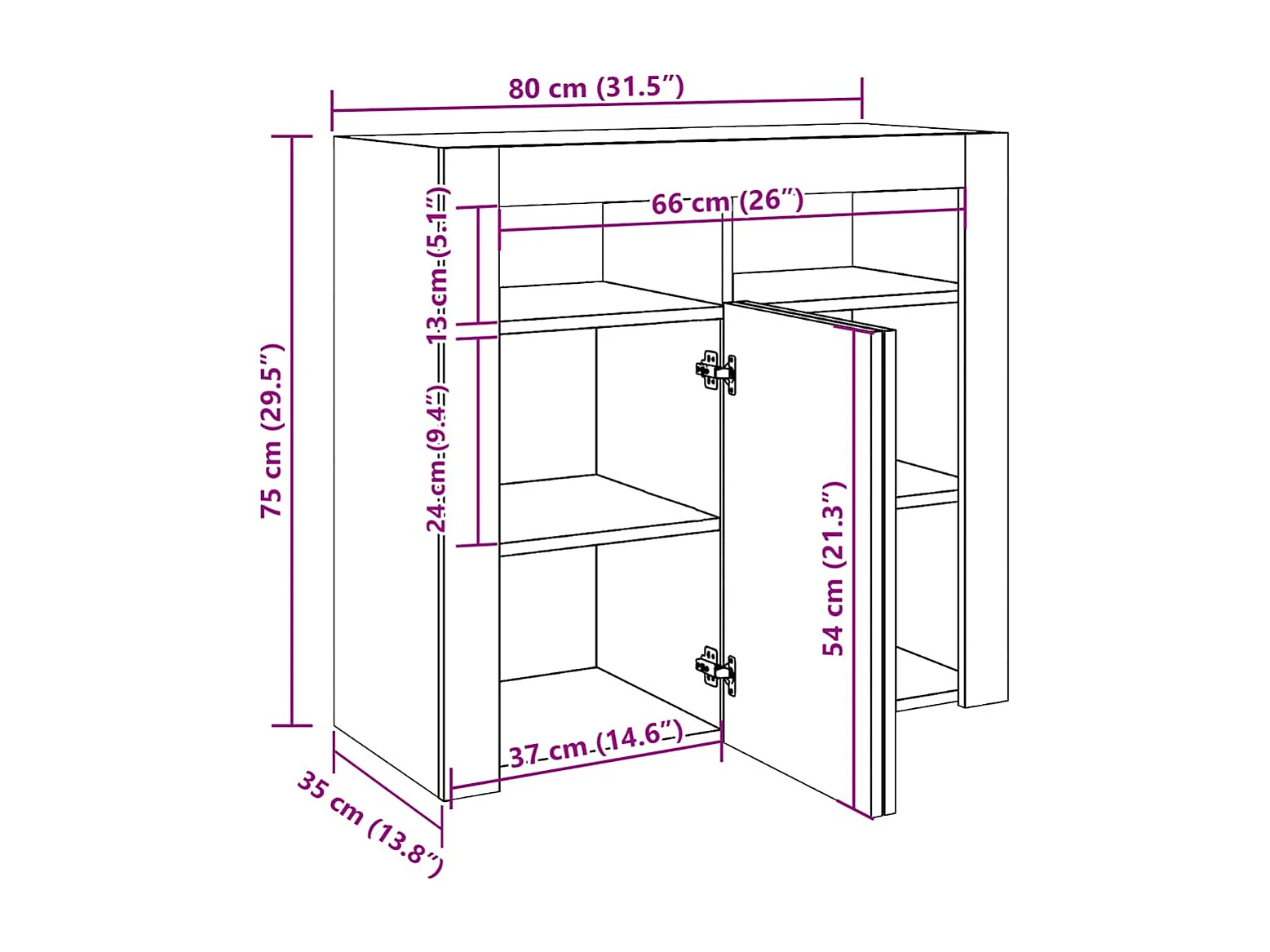 Buffet avec lumières LED noir 80x35x75 cm