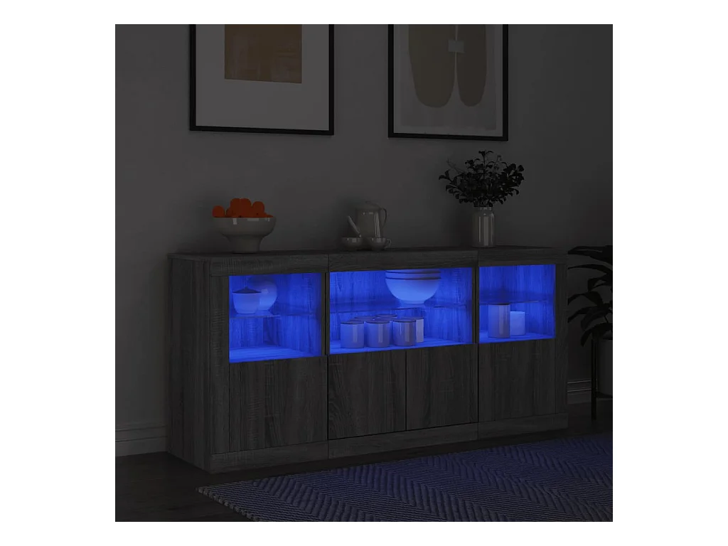 Buffet avec lumières LED sonoma gris 142,5x37x67 cm
