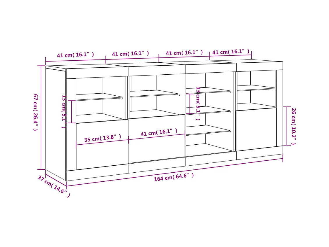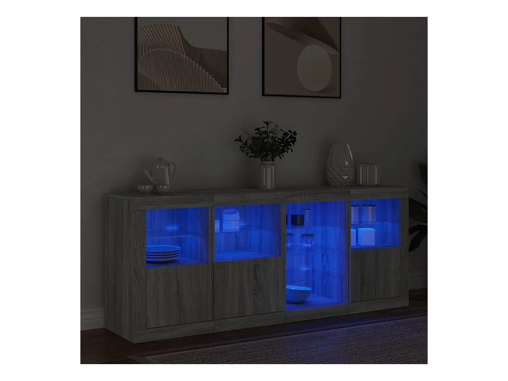 Buffet avec lumières LED sonoma gris 164x37x67 cm