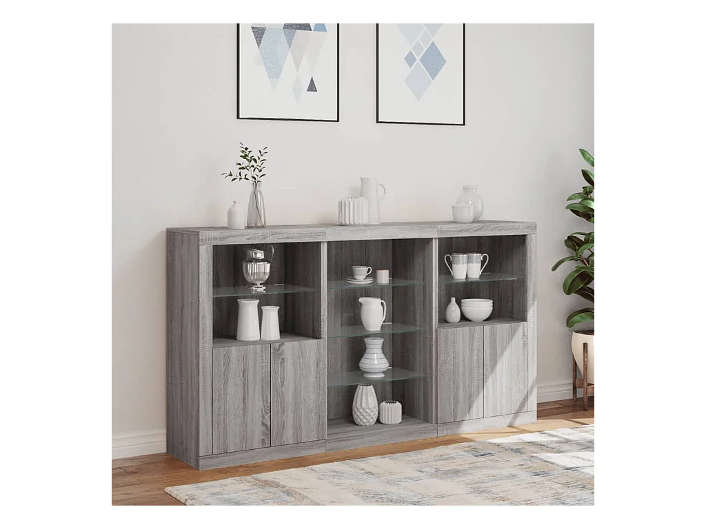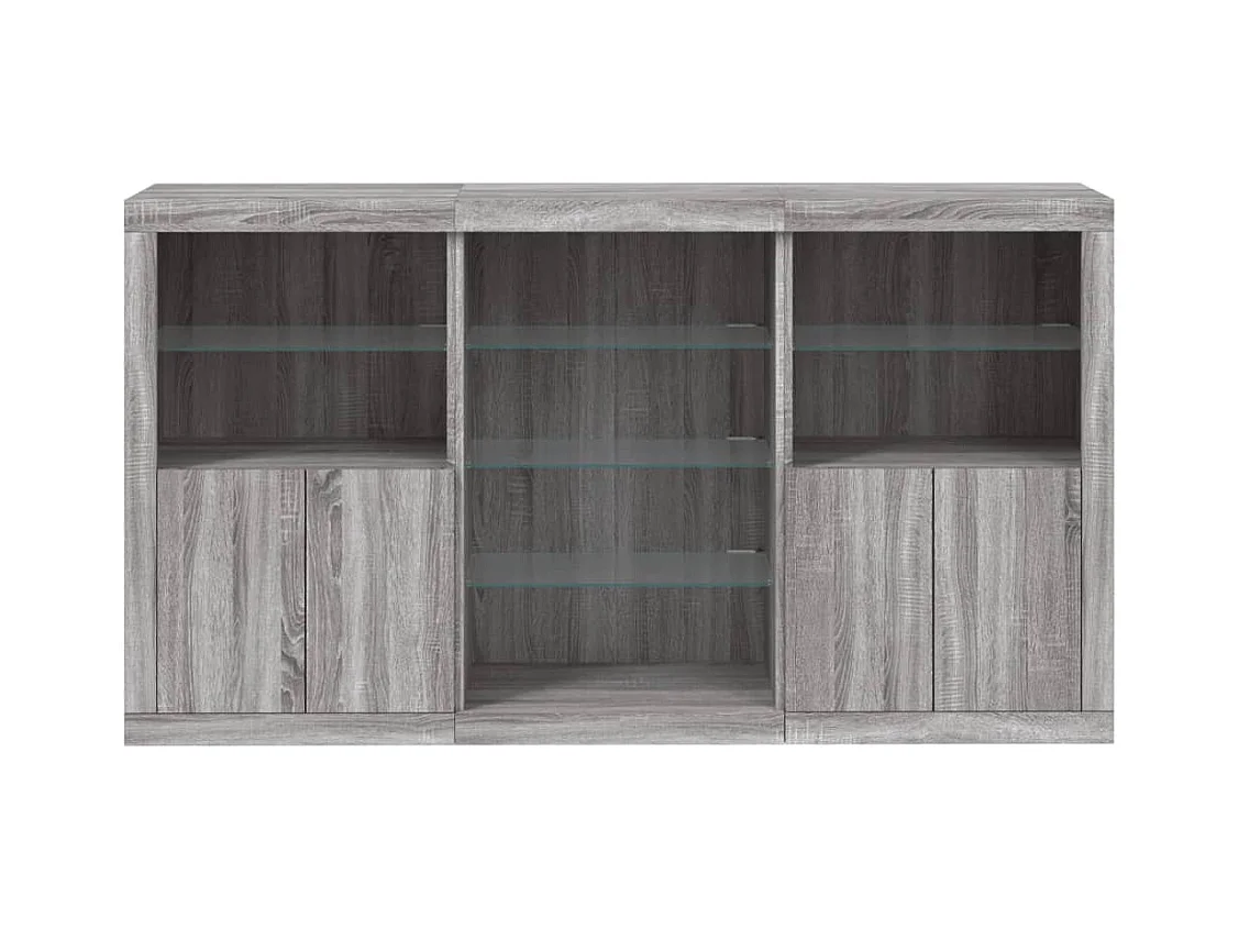 Buffets avec lumières LED 3 pièces sonoma gris bois d'ingénierie