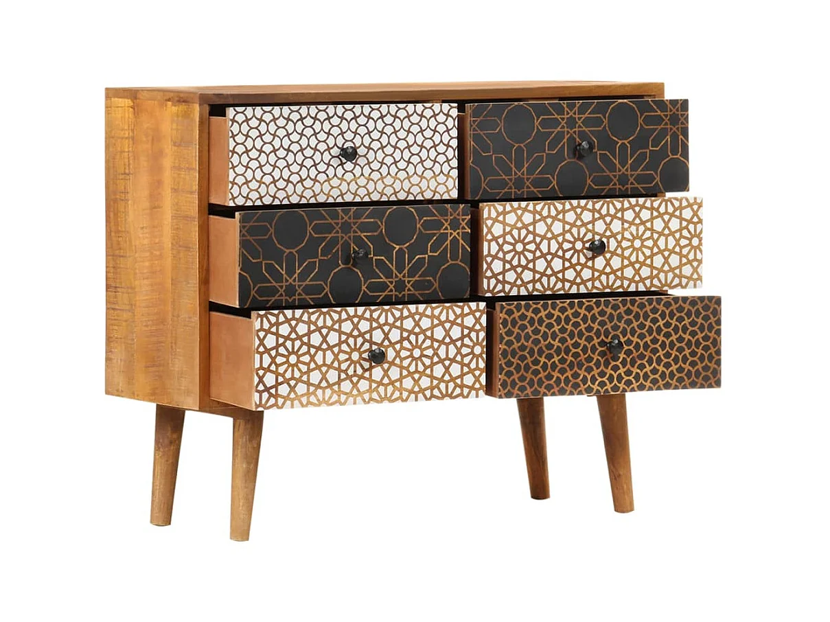 Buffet avec motif imprimé 90x30x70 cm Bois de manguier massif EGER85679