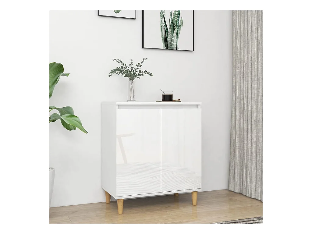 Buffet avec pieds en bois blanc brillant bois d'ingénierie FR46677