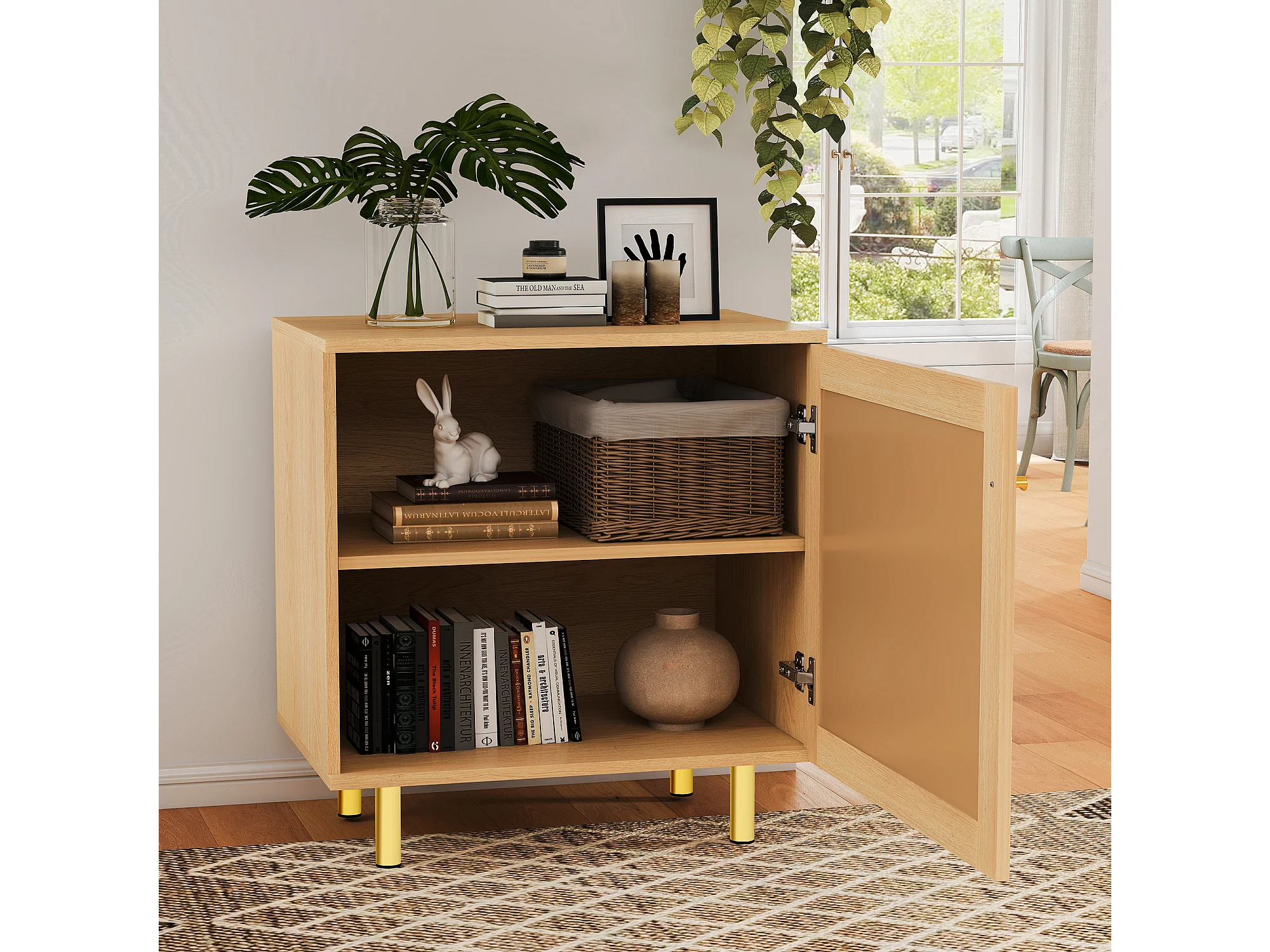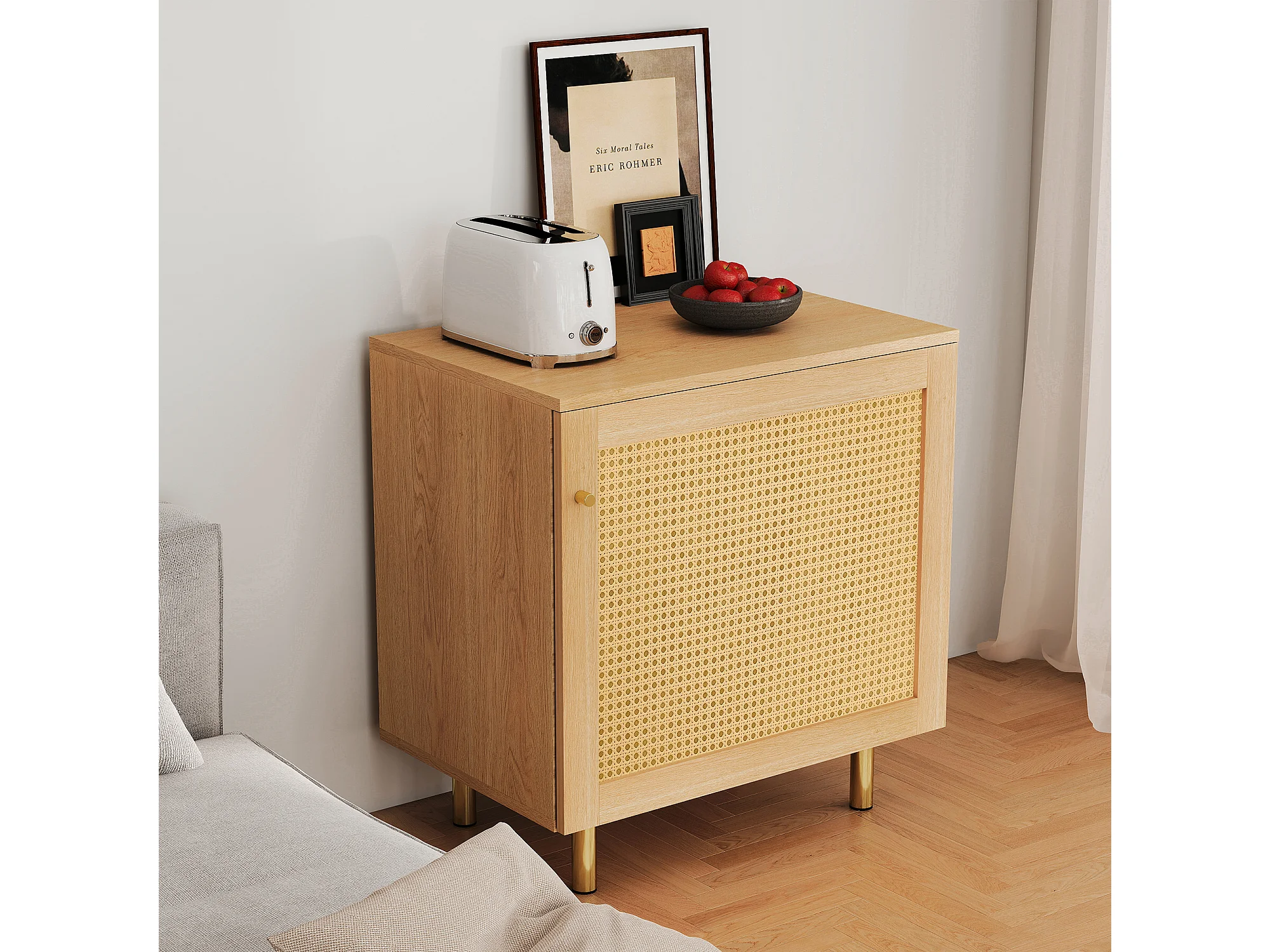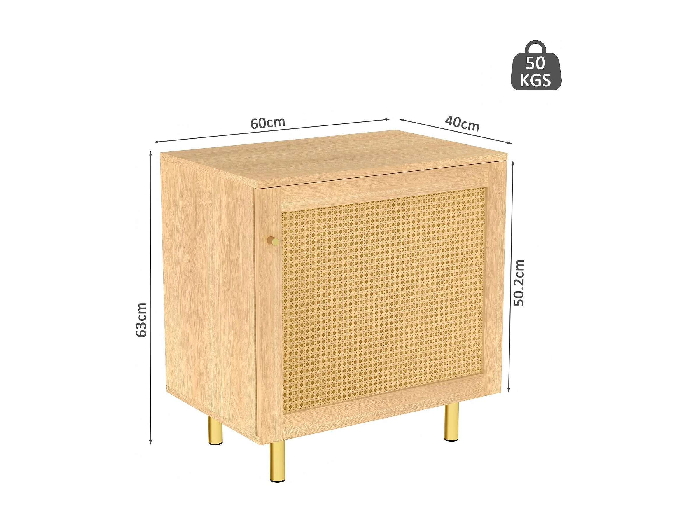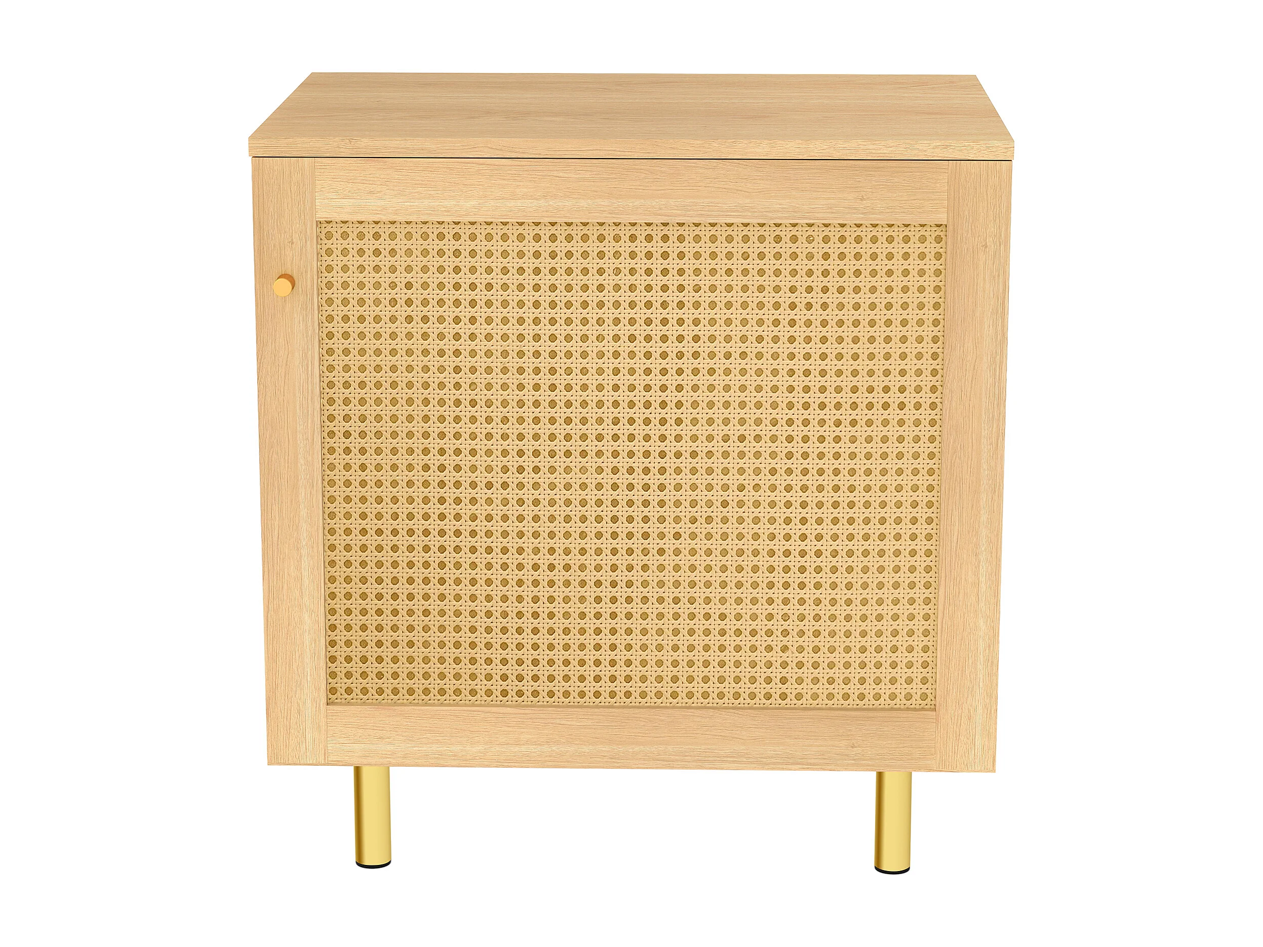 Buffet avec porte en rotin - Aspect bois naturel 60 x 40 x63 cm