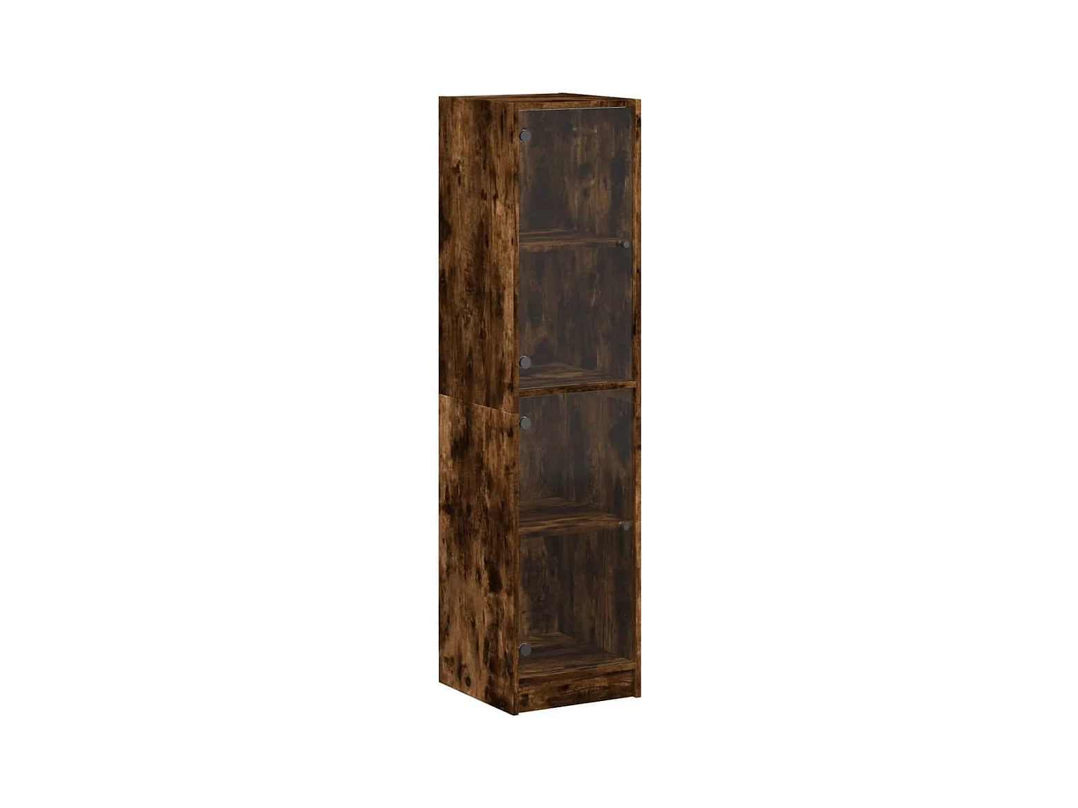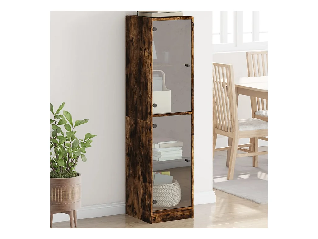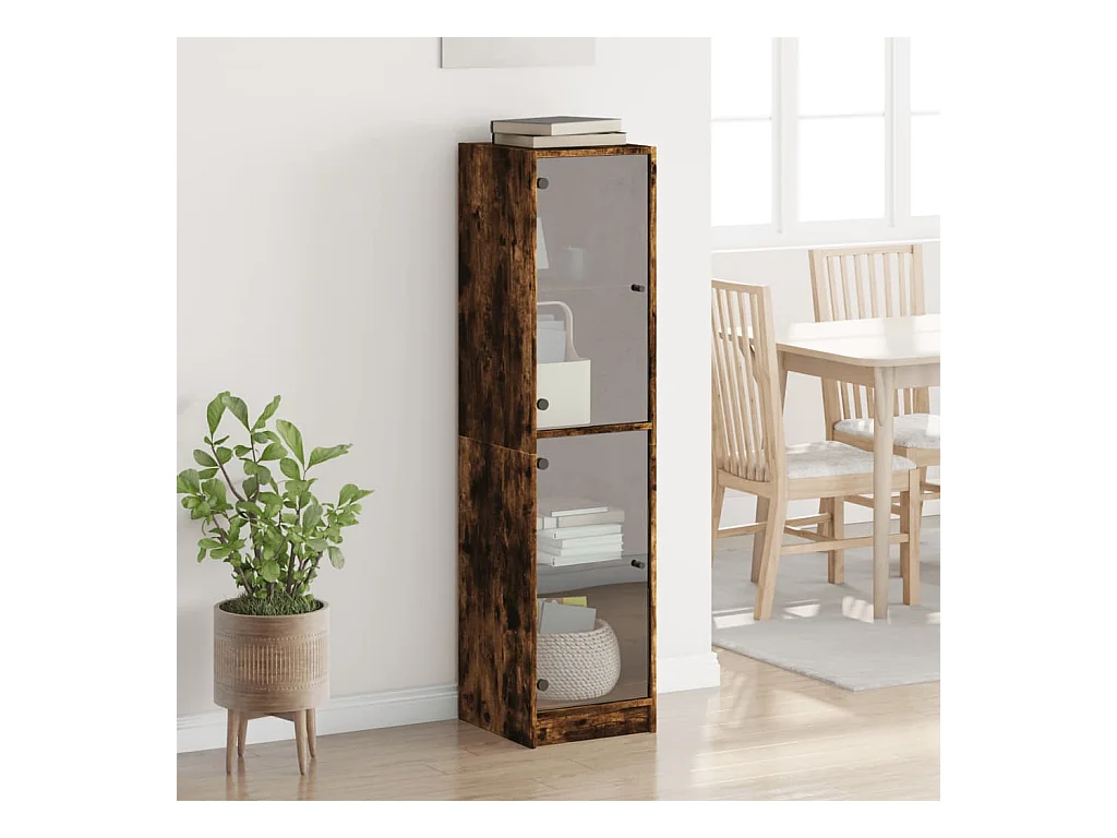 Buffet haut avec portes chêne fumé 68x37x142 cm bois ingénierie