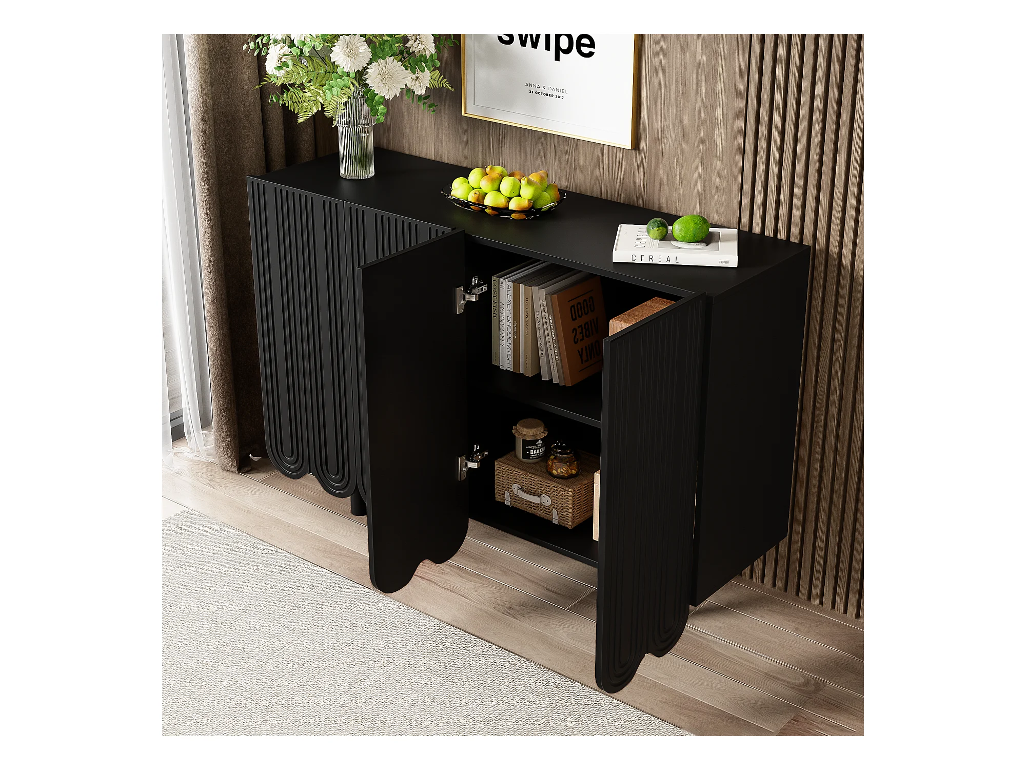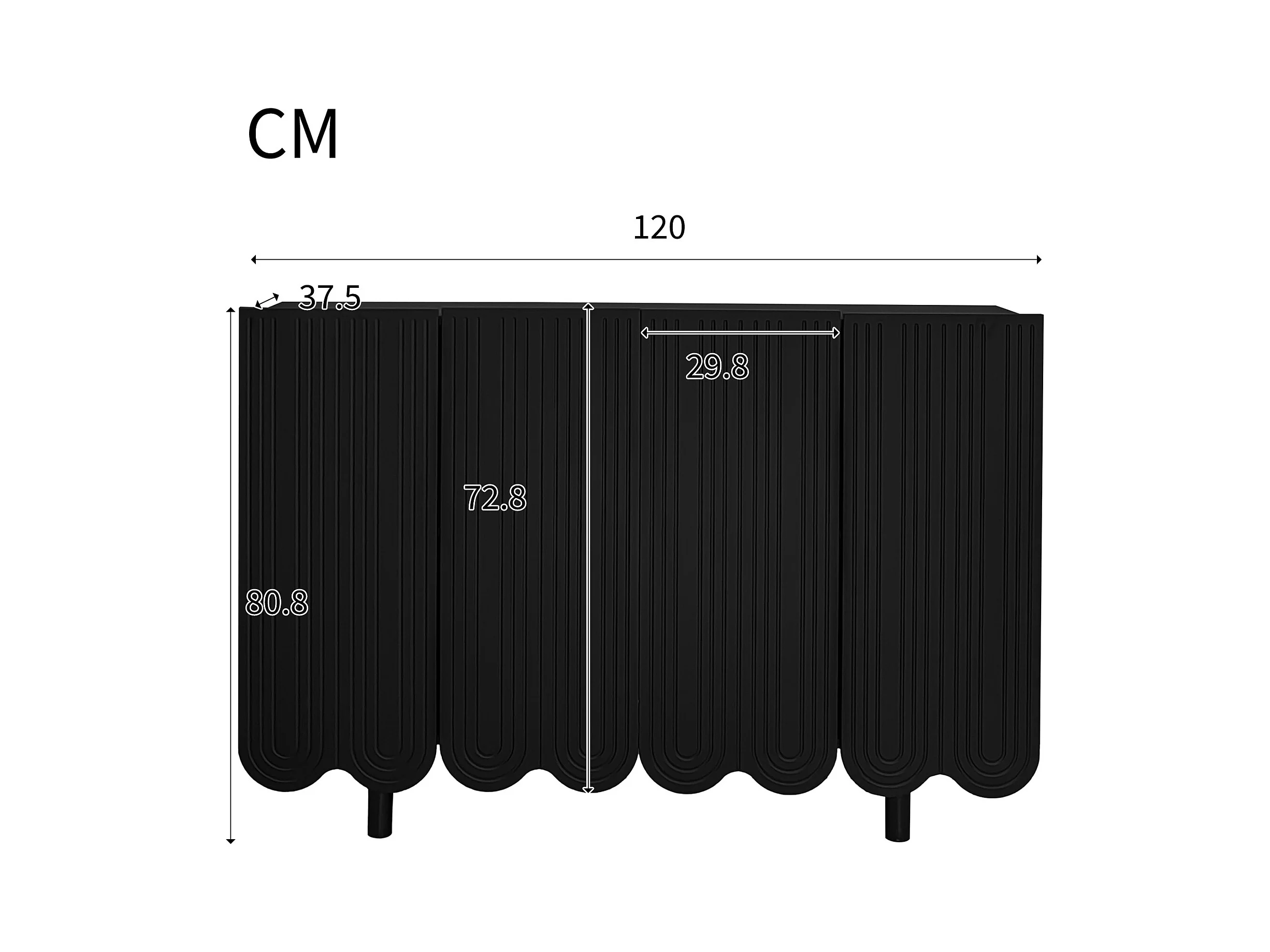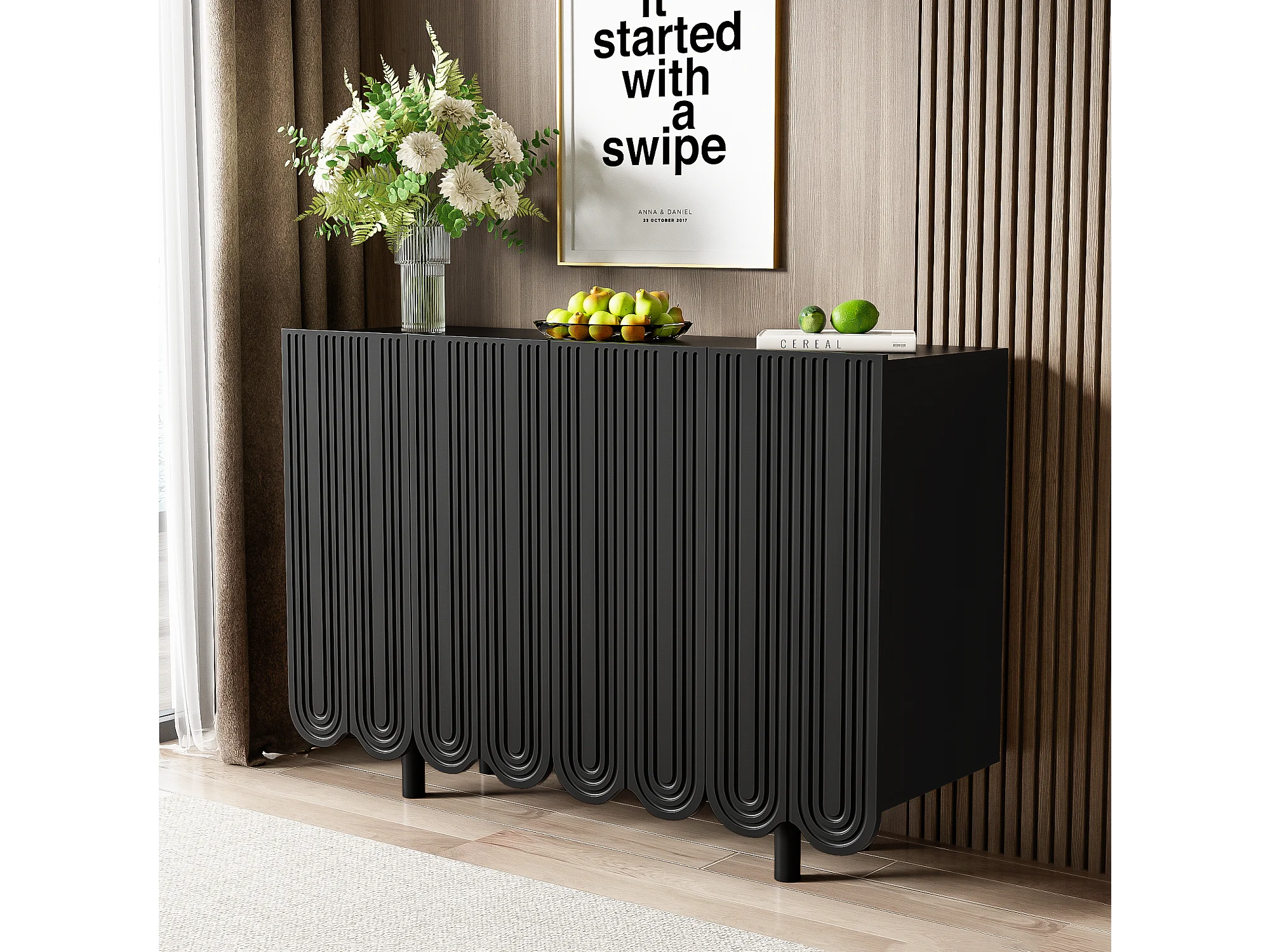 Buffet avec portes sculptées en forme de goutte, MDF, noir (120x37.5x80.8 cm)
